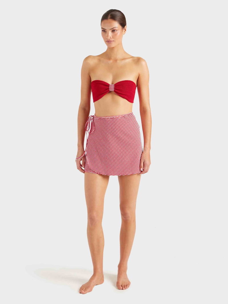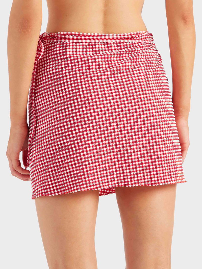This technical beach cover-up is as versatile as it is chic. The mini sarong is fabricated from ultra-lightweight, quick-drying, woven bi-stretch seersucker gingham. Featuring a classic wrap-around design and adjustable tie-waist for a personalised fit.