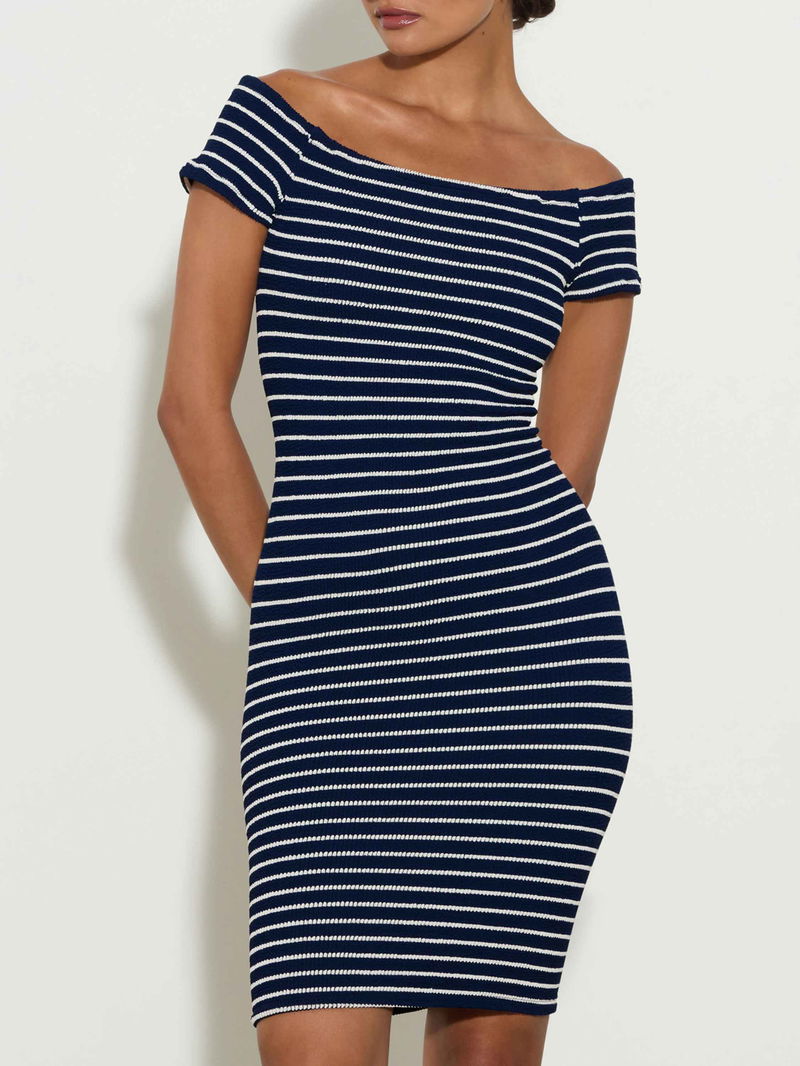 Throw on and go. The Grace dress has timeless appeal with a bodycon fit, adjustable length, and our signature crinkle comfort. Get instant elegant ease with this off-the-shoulder number.