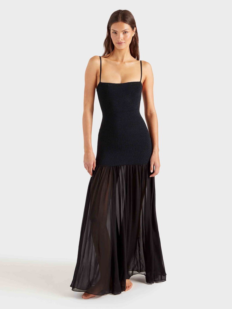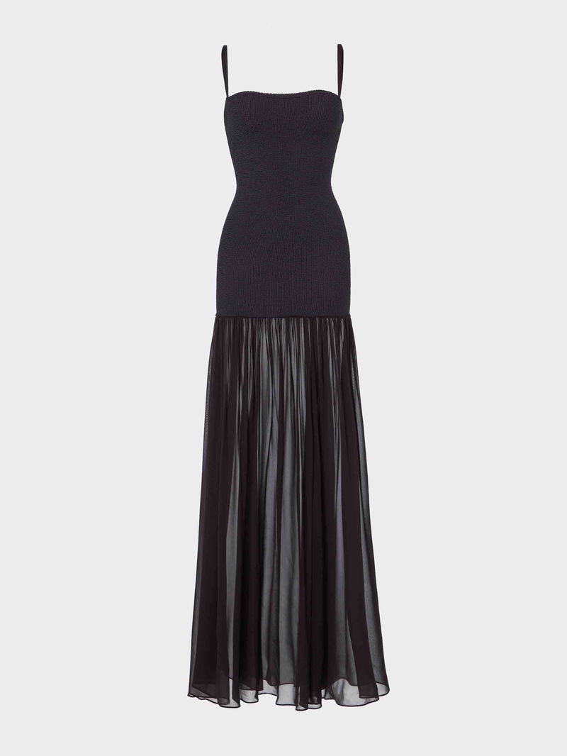 The Hybrid Dress is a study in contrasts: sculpting Original Crinkle™ meets sheer, fluid fabric in a silhouette designed for all hours. Cut long for elegance and ease, it’s made for late lunches, long dinners, and everything in between.