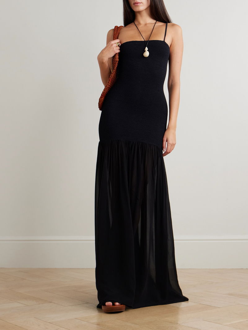 Just like the label’s coveted swimwear, Hunza G’s ‘Hybrid’ dress is fit for sun-drenched days and dreamy vacations. Made from signature 'Original Crinkle™' seersucker, it has a classic square neckline and falls to a flowy chiffon skirt.