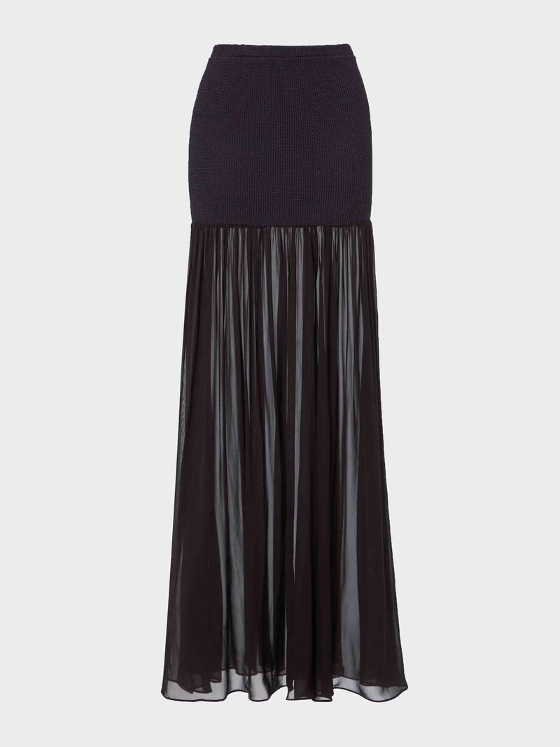 The Hybrid Skirt pairs sculpting Original Crinkle™ with sheer, fluid fabric for a silhouette that feels both structured and soft. Designed to sit high on the waist and fall to the ankle, it’s the piece you’ll reach for from first light to final call.