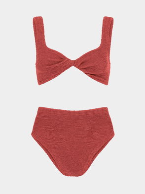 Pack the Jamie bikini from Hunza G for your next warm-weather getaway. This swimwear piece is made using Hunza G's Seamless Crinkle Technology, making it one-size-fits-all. Featuring high-rise bikini bottoms and a twist-detail bikini top, the two-toned set is primed to become one of your favorites.