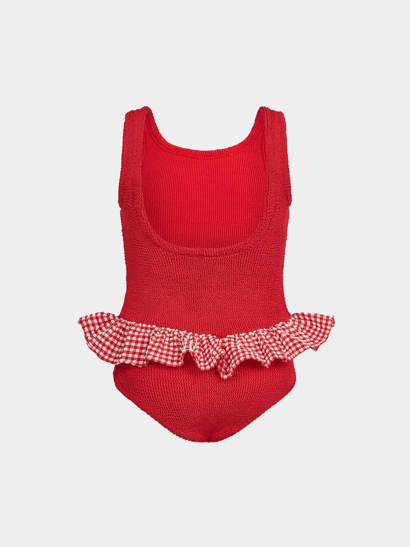 Our archival Denise style gets an update with tonal seersucker gingham peplum frills.