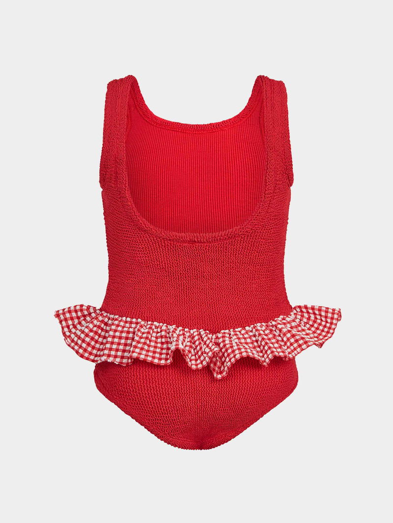 The archival Denise style gets an update with tonal seersucker gingham peplum frills.