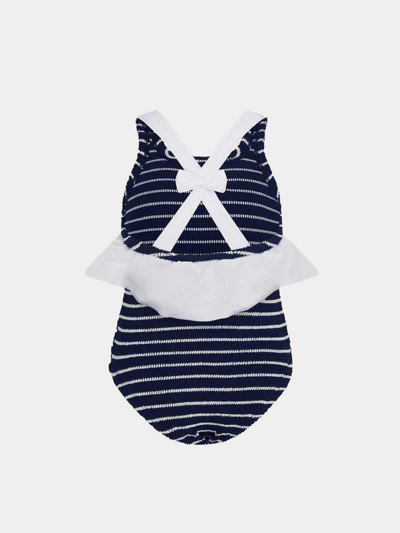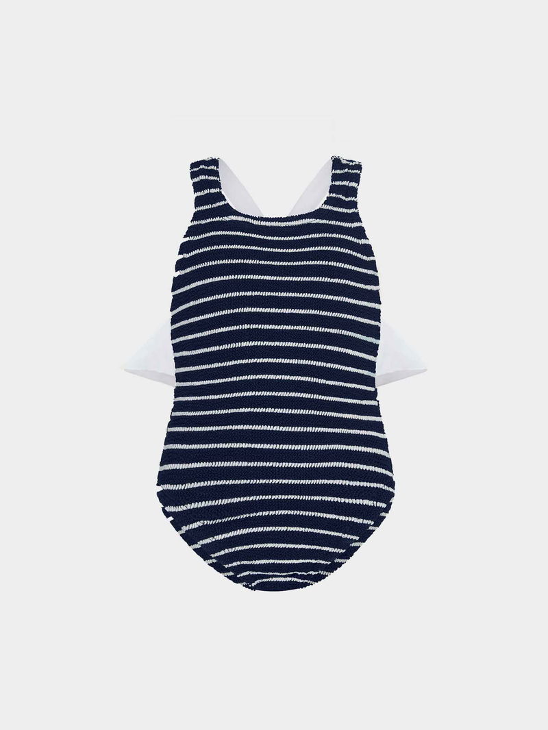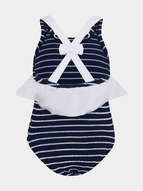 Tiny frills for tiny people. Building their wardrobe has never been simpler with a swimsuit that grows with them. Neon colours may fade over time. This is not a manufacturing defect.