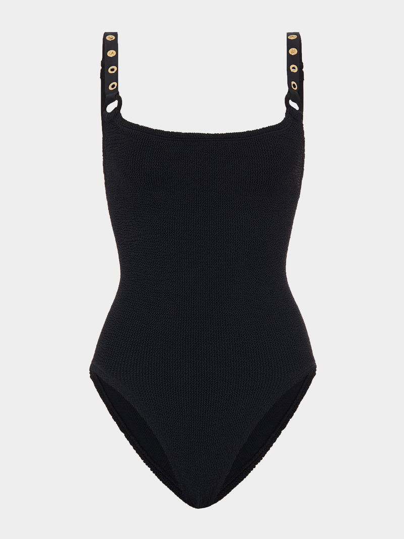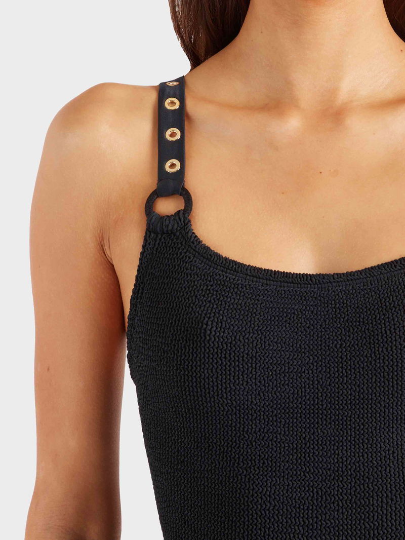 Melody Eyelet Swim - Black/Gold - Black/Gold / One Size