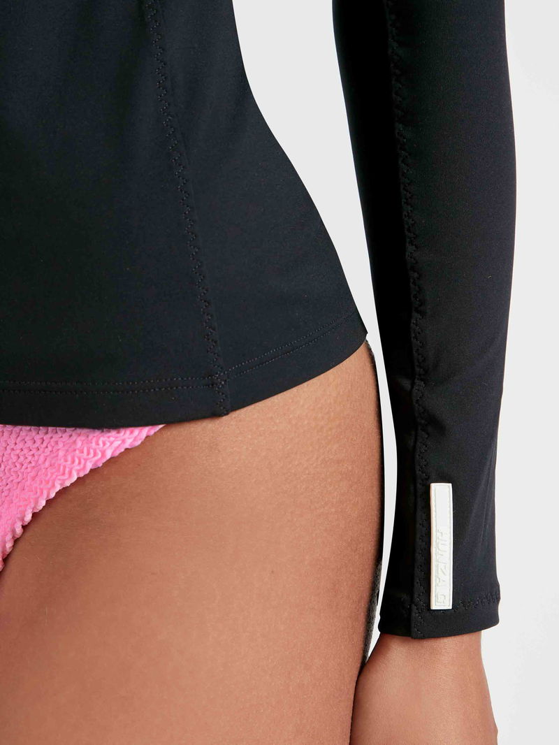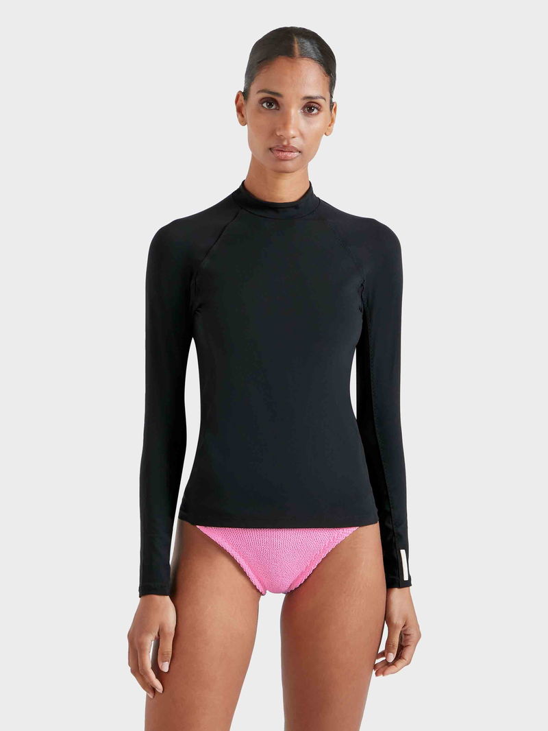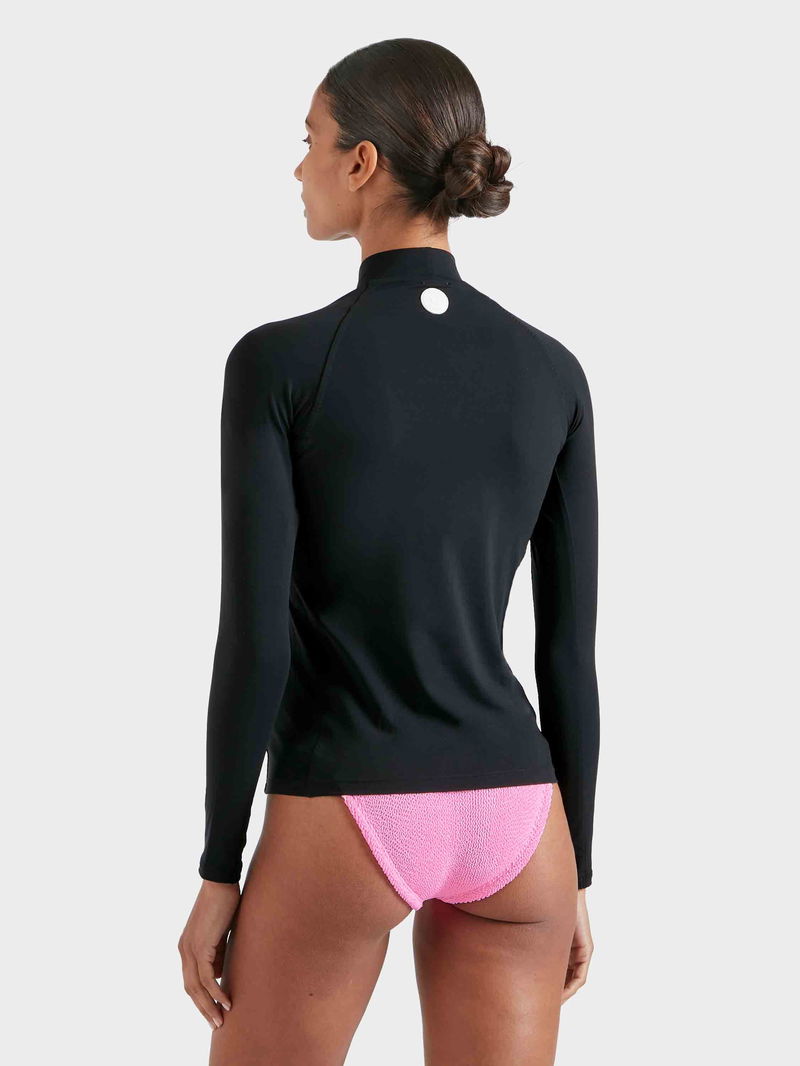 Crafted from lightweight, breathable, Italian UPF 50+ fabric, the Miley top has contrasting rubberised logo detailing, long sleeves and a mock neck. Functional, high-performance, physical sun protection that doesn't compromise on style.