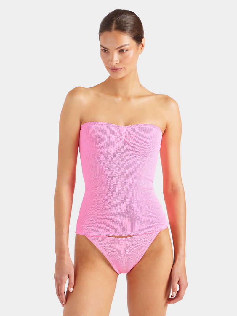Hunza G channels retro glamour with a modern twist. From bikinis to figure-flattering one-pieces - in its iconic crinkle fabric - each piece radiates effortless chic. Embracing inclusivity and body positivity, expect timeless swimwear that's as comfortable as it is stylish.