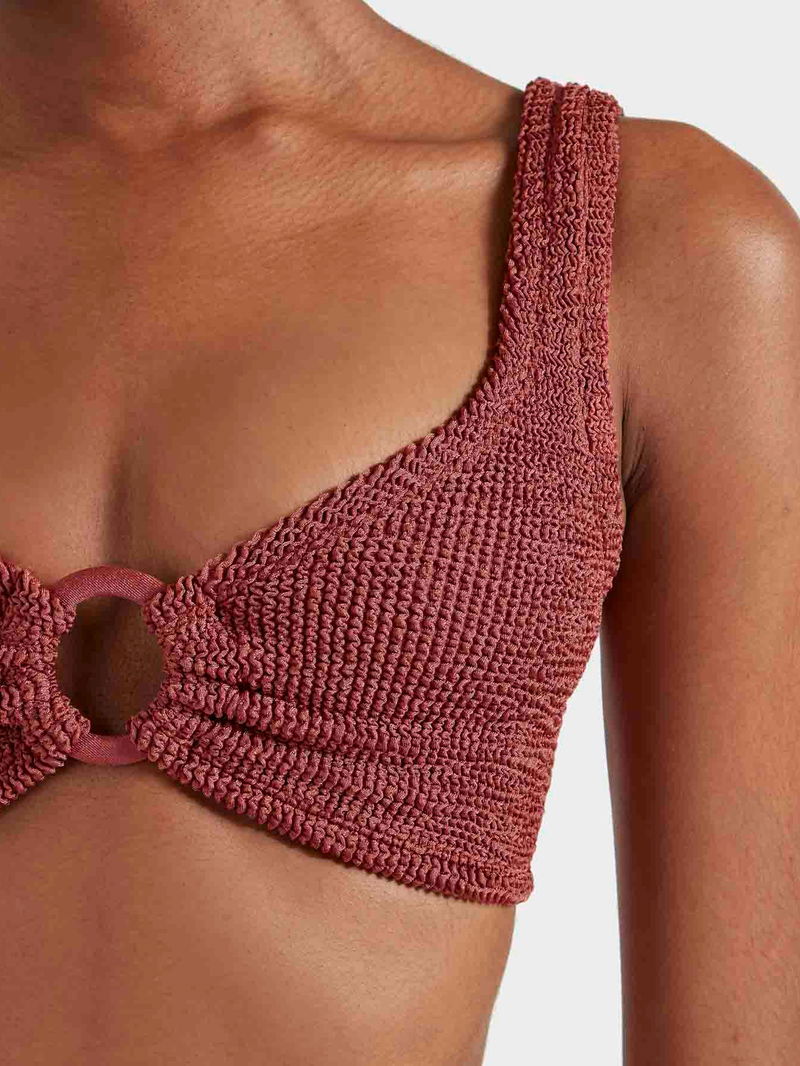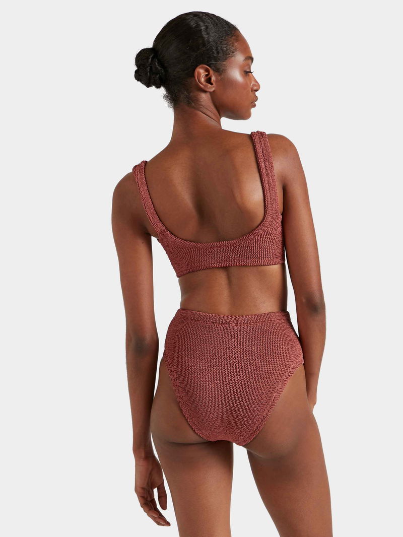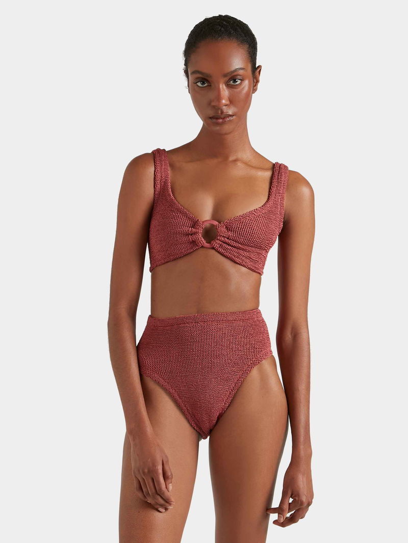 She's got it all. Nadine's high-waisted bikini bottoms and tonal hoop detailing have comfort with a serving of understated glamour.