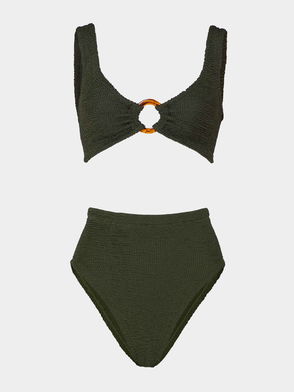 Hunza G's bikini sets look so great together, but you can mix and match with styles in your collection to create unique combinations, too. This 'Nadine' bikini is made from the brand's signature 'CrinkleTM' seersucker, flecked with shimmering metallic threads. It's free from fastenings so you can lie comfortably.