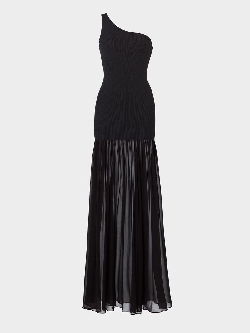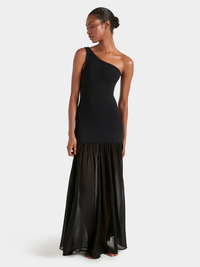 The Hybrid Nancy Dress is a study in contrasts: sculpting Original Crinkle™ meets sheer, fluid fabric in a silhouette designed for all hours. Now with an elegent asymetircal neckline, this dress is made for late lunches, long dinners, and everything in between.