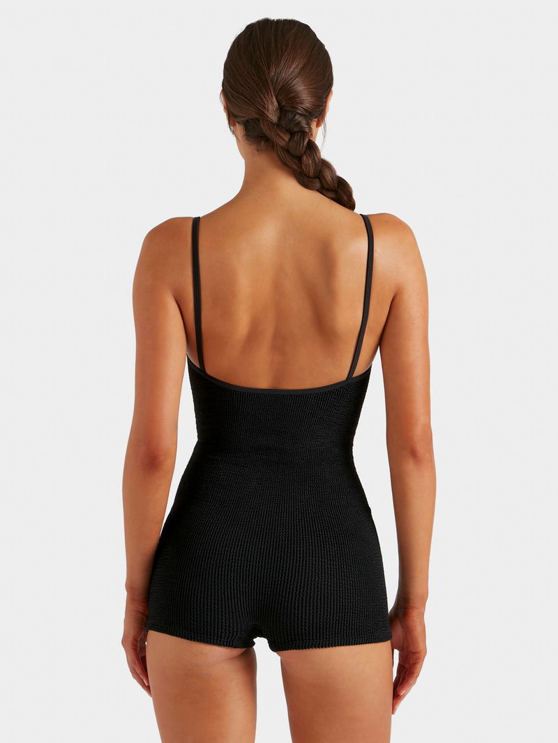 Inspired by the silhouette of the signature Pamela Swimsuit, the Pamela Romper offers a little more coverage.