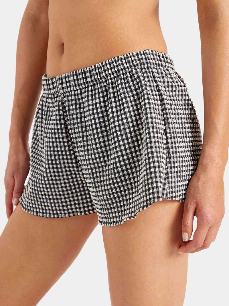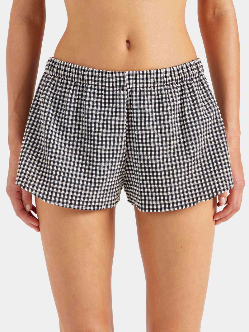Fabricated from ultra-lightweight, quick-drying, woven bi-stretch seersucker gingham, these shorts are designed to be worn in and out of the water. Featuring a classic, sporty fit, and an elasticated waistband.