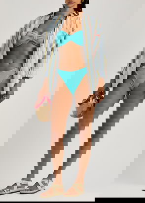 Hunza G’s bikini comes with a tankini top with thin straps and high-cut briefs. It’s made from the brand’s signature ‘Crinkle™’ seersucker, which is beloved by the likes of Emily Ratajkowski and Dua Lipa for its soft and supportive feel. Wear yours as a set or mix it with other pieces from the brand.