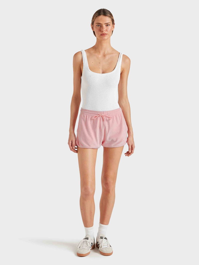 These 100% cotton terry towelling shorts are soft, versatile and functional. Featuring an adjustable drawstring waistband, regular fit, and embroidered logo detailing at the hem. This summer staple will take you seamlessly from warm-ups to dry-offs in style.