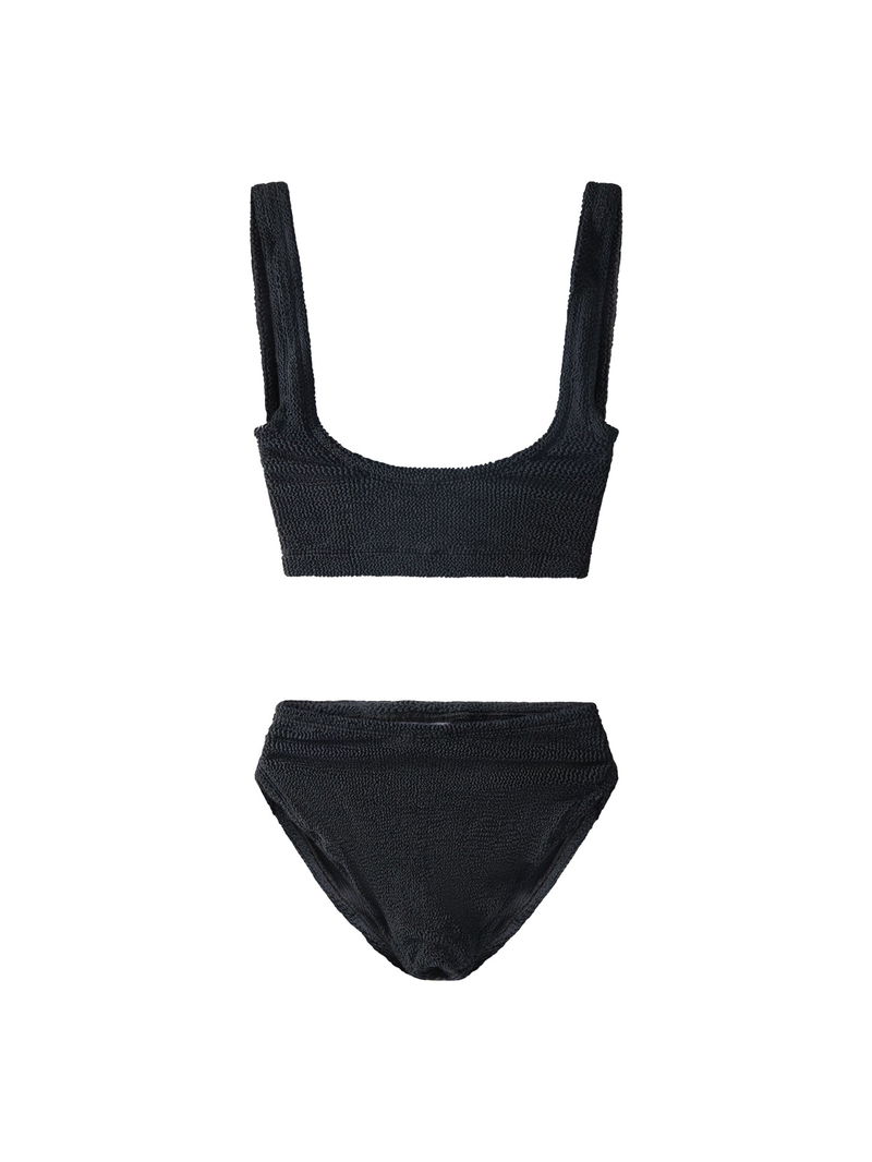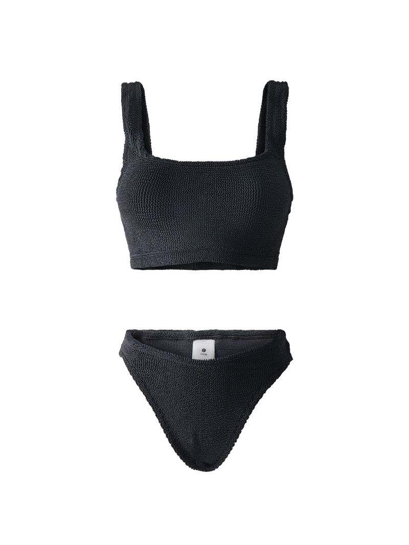 The Xandra Bikini by Hunza G is an icon of the brand’s modern swimwear design. Crafted from its signature crinkle seersucker, it features wider straps and fuller coverage for confident, sculpted support. In classic black, it’s a piece that transcends seasons — timeless, flattering, and endlessly wearable.