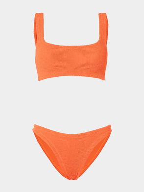 Sometimes simple is best, and Hunza G's Xandra bikini set shows why. Decidedly minimalist and perfect for showing your beach body in an understated way, this ribbed textured seersucker style (which is handmade in London FYI) comprises a scoop-neck top that drops from thick shoulder straps and mid-rise, high-leg bikini bottoms that continue the less-is-more mood. Just add oversized sunglasses and a straw hat for chilling by the pool.