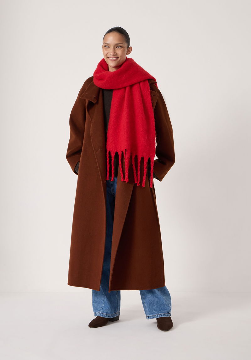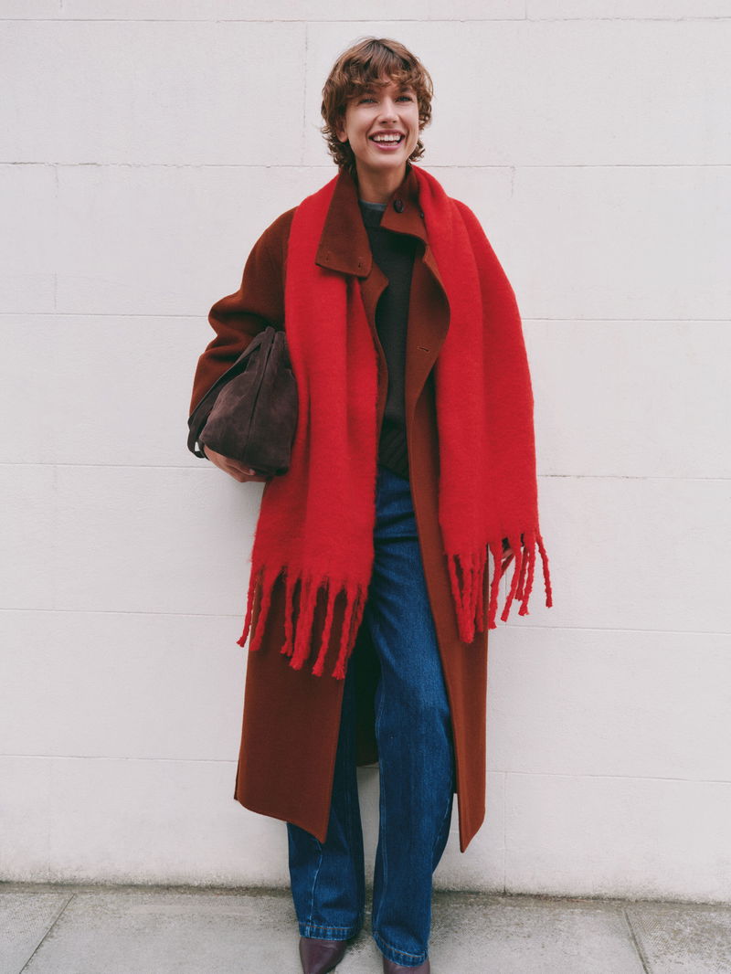Is it just us or does the bright red shade of our Aspen scarf instantly make cold winter days feel more bearable? It's lovely and long so we can really wrap ourselves up in it, but it never feels bulky thanks to the super-soft finish. We'll be draping the tasselled ends casually over our shoulder for a laid-back look.