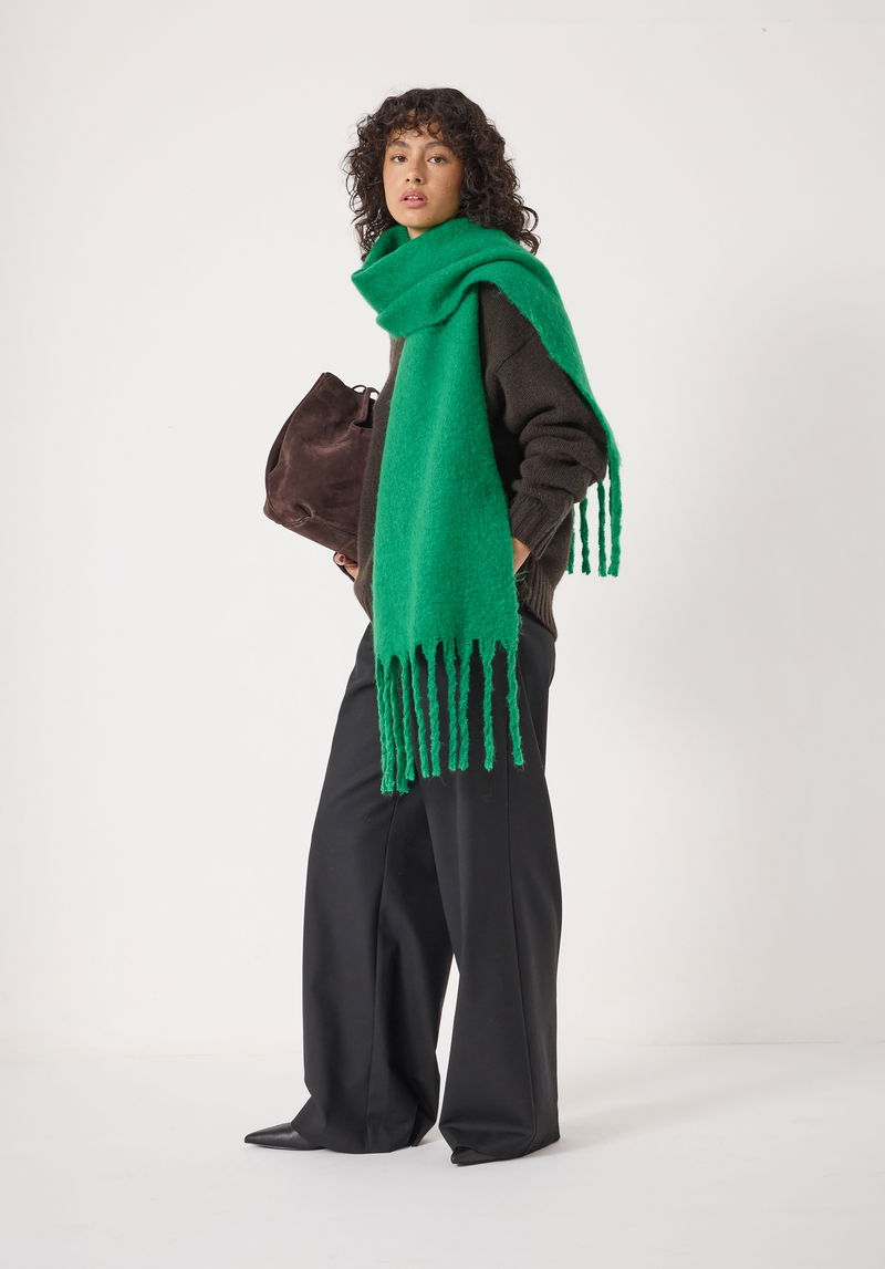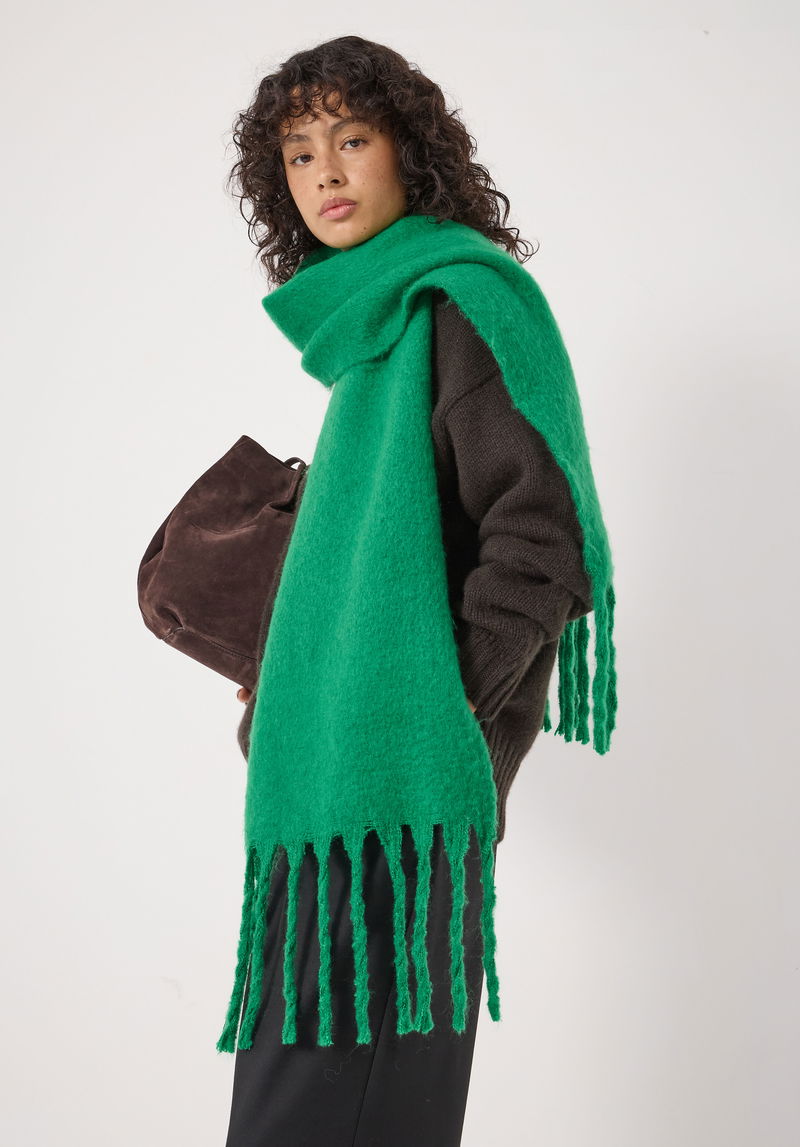 Is it just us or does the bright green shade of our Aspen scarf instantly make cold winter days feel more bearable? It's lovely and long so we can really wrap ourselves up in it, but it never feels bulky thanks to the super-soft finish. We'll be draping the tasselled ends casually over our shoulder for a laid-back look.