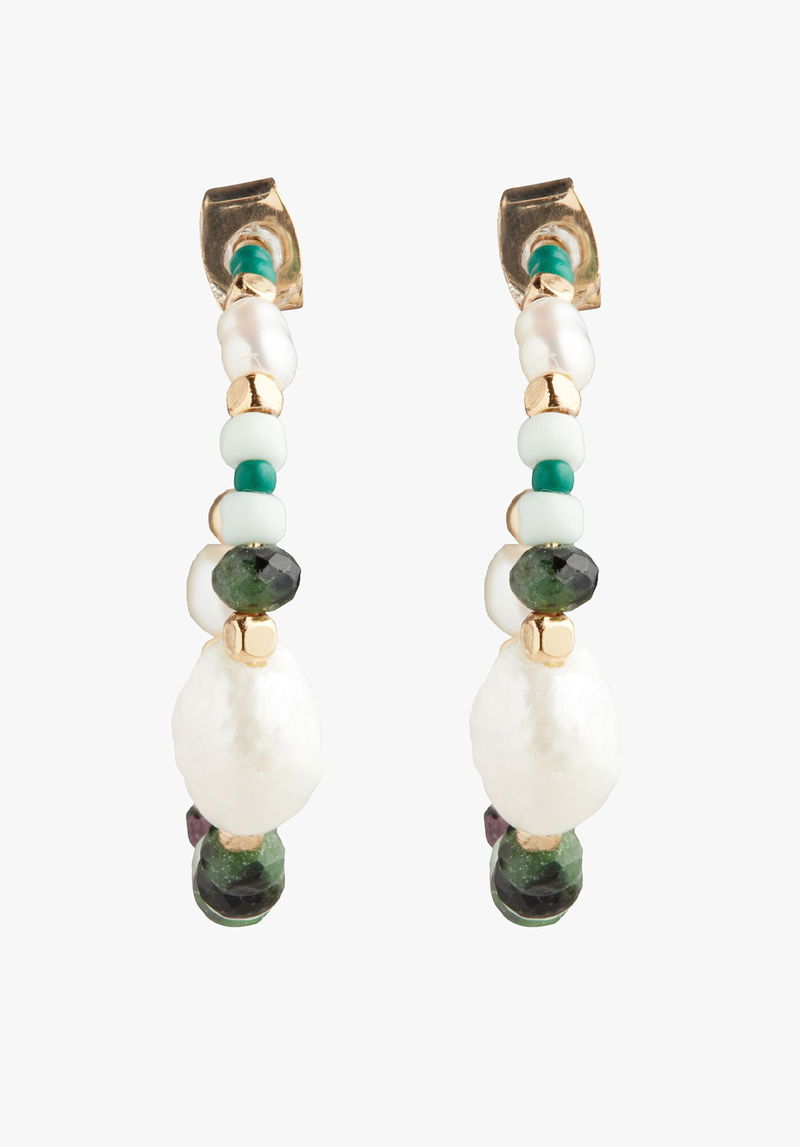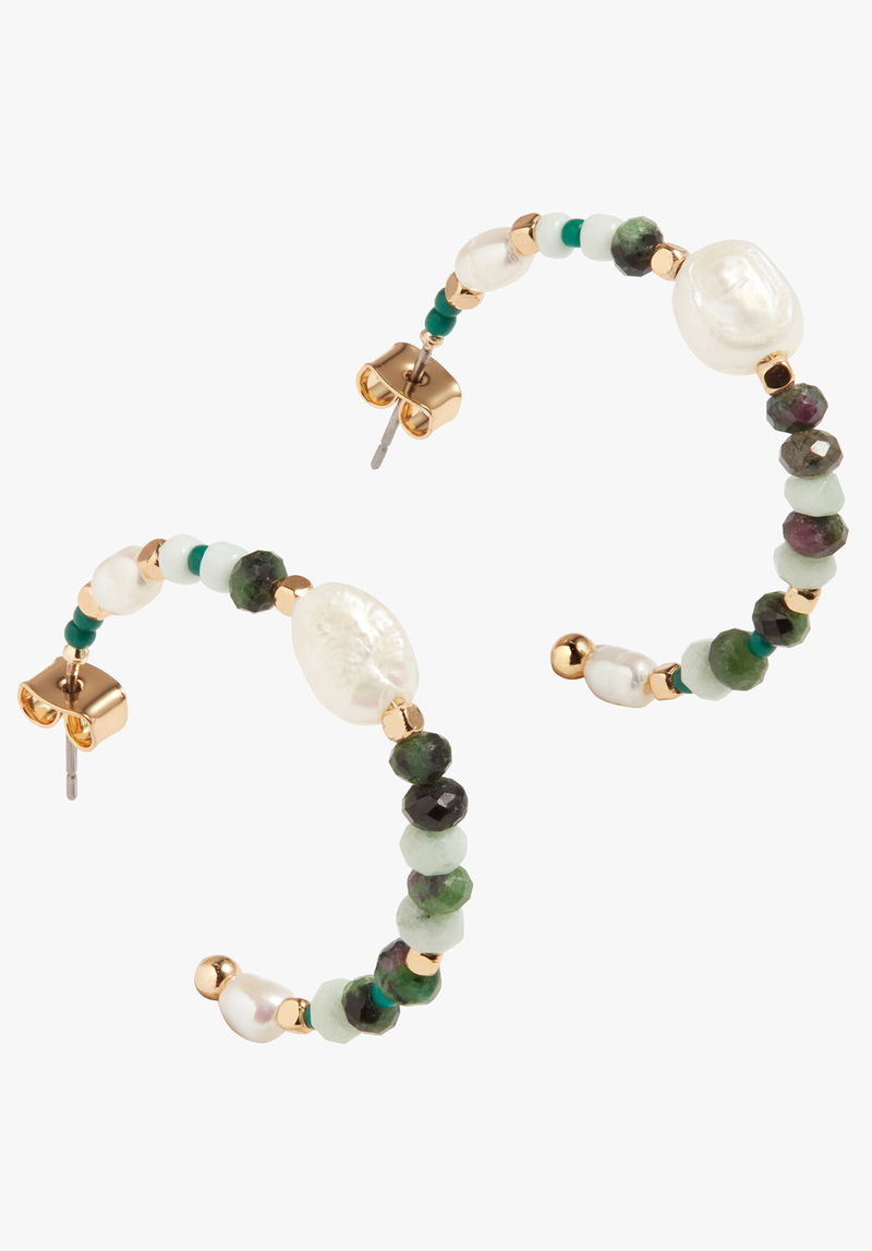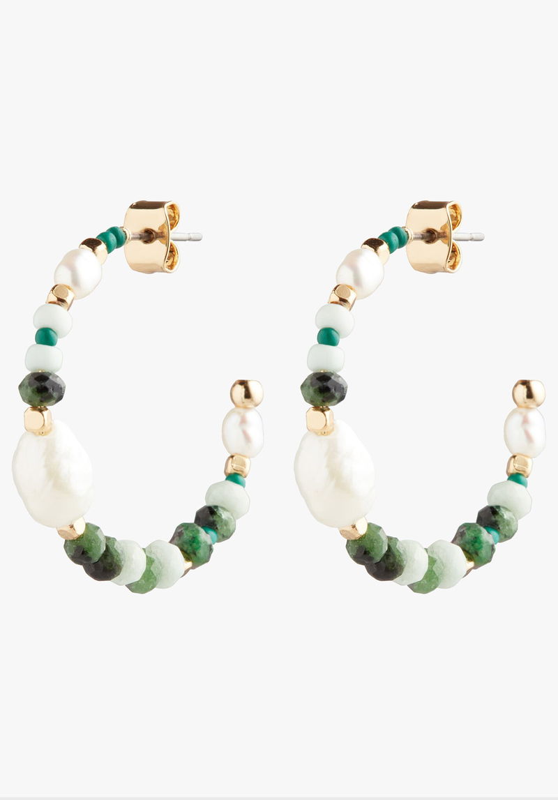 Want to know what jewellery we'll be wearing this season at hush HQ? Our Azalea hoop earrings are a top contender (along with the matching necklace and bracelet). Strung with semi-precious stones like ruby zoisite, amazonite and green agate, this elegant pair is accented with chunky freshwater pearls for a timeless finish.