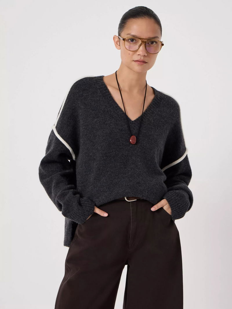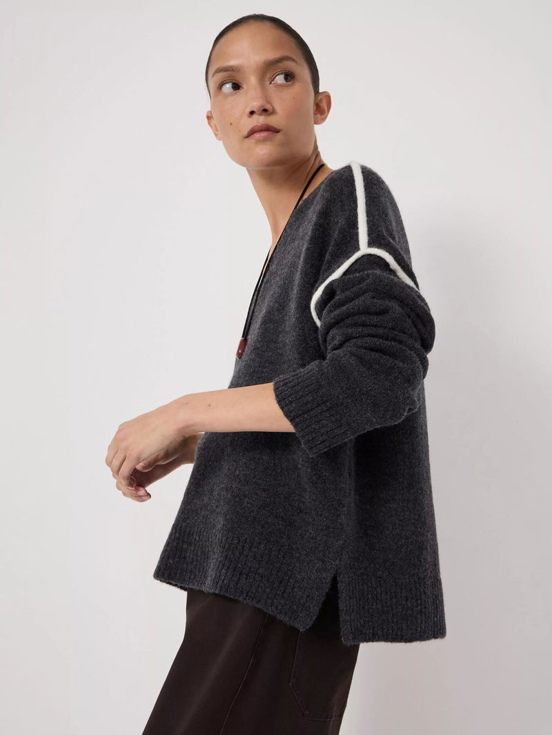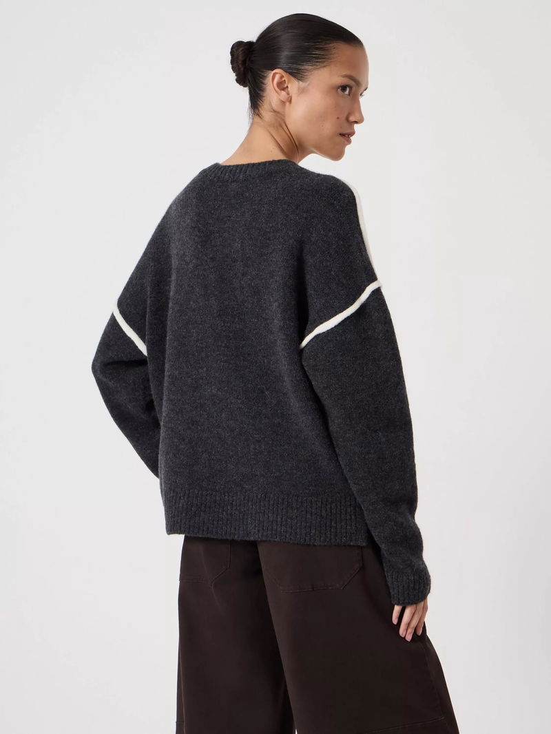 Billie Contrast Stitch Wool Blend Jumper, Charcoal Marl