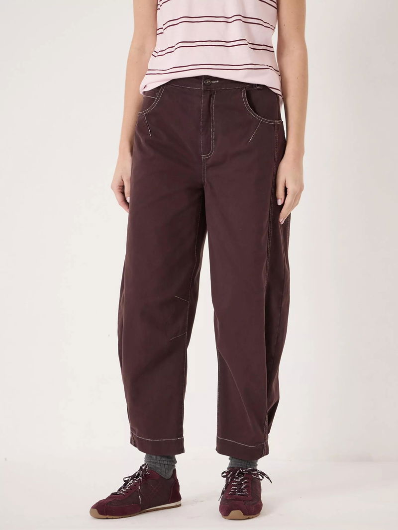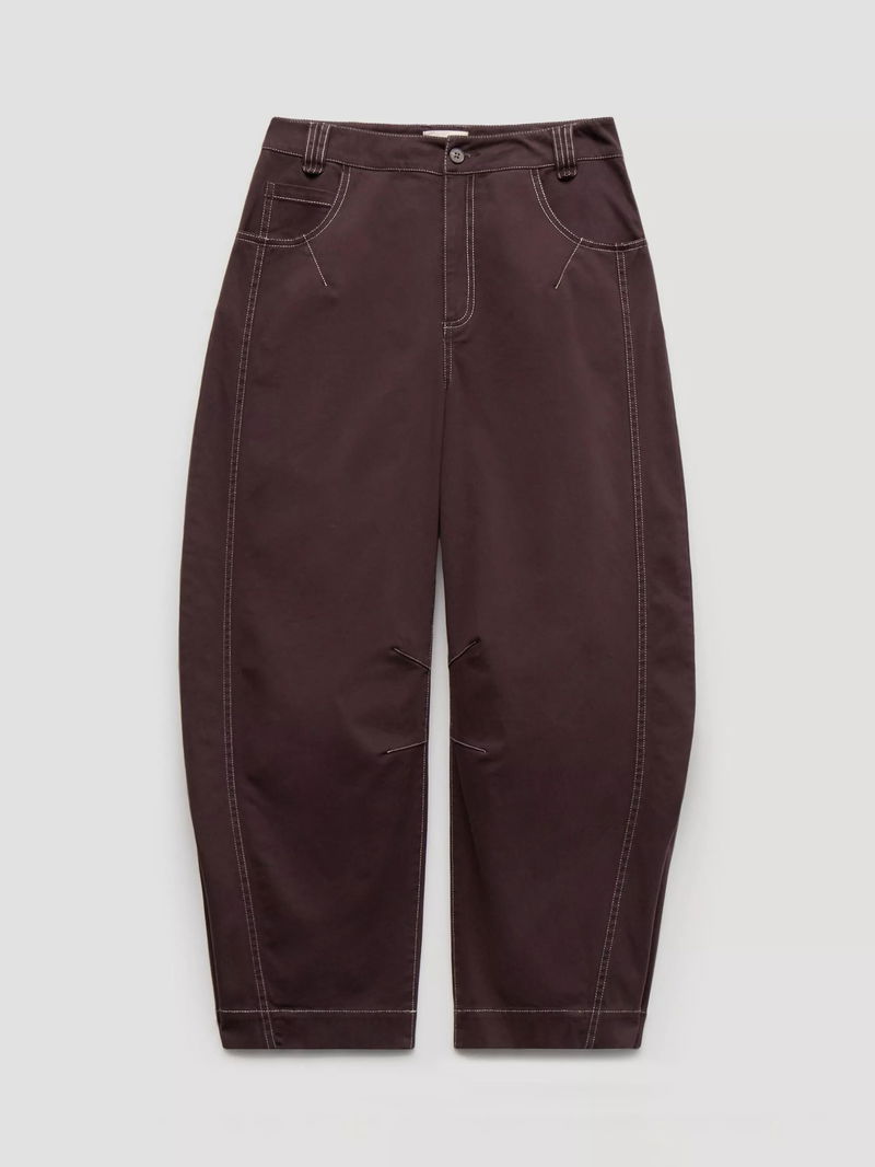 Bryce Seam Detail Barrel Leg Jeans, Dark Red