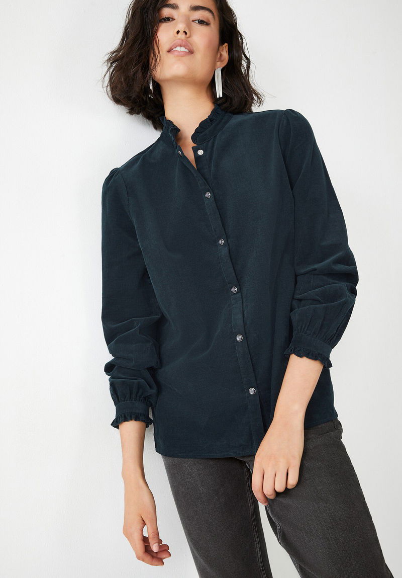 Our Carly shirt offers a smart (yet totally wearable) start to the season. Made from baby corduroy – think traditional corduroy in a tighter weave – this pure cotton design is a stylish way to beat the chill thanks to its cosy texture. And we can't stop looking at those pearly snap buttons.