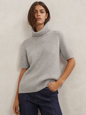 This chunky knit jumper is woven from soft and cosy cashmere in a relaxed shape. It has a slouchy roll neck and slits at the sides. French tuck yours into midi skirts or wear it with jeans and boots.