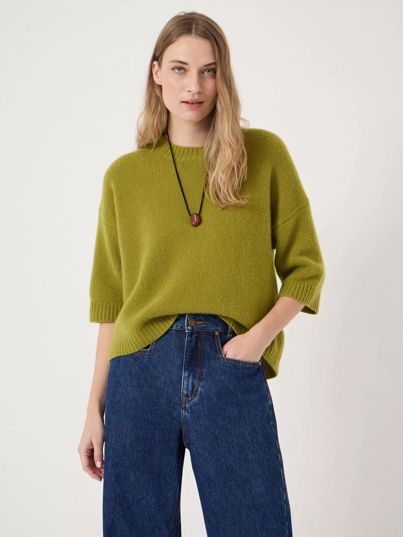 A chunky knit T-shirt from HUSH, made from dreamy cashmere for a rich, warming feel. Featuring a round neck and elbow length sleeves, the plain design means it goes with everything. A wear-everywhere essential.