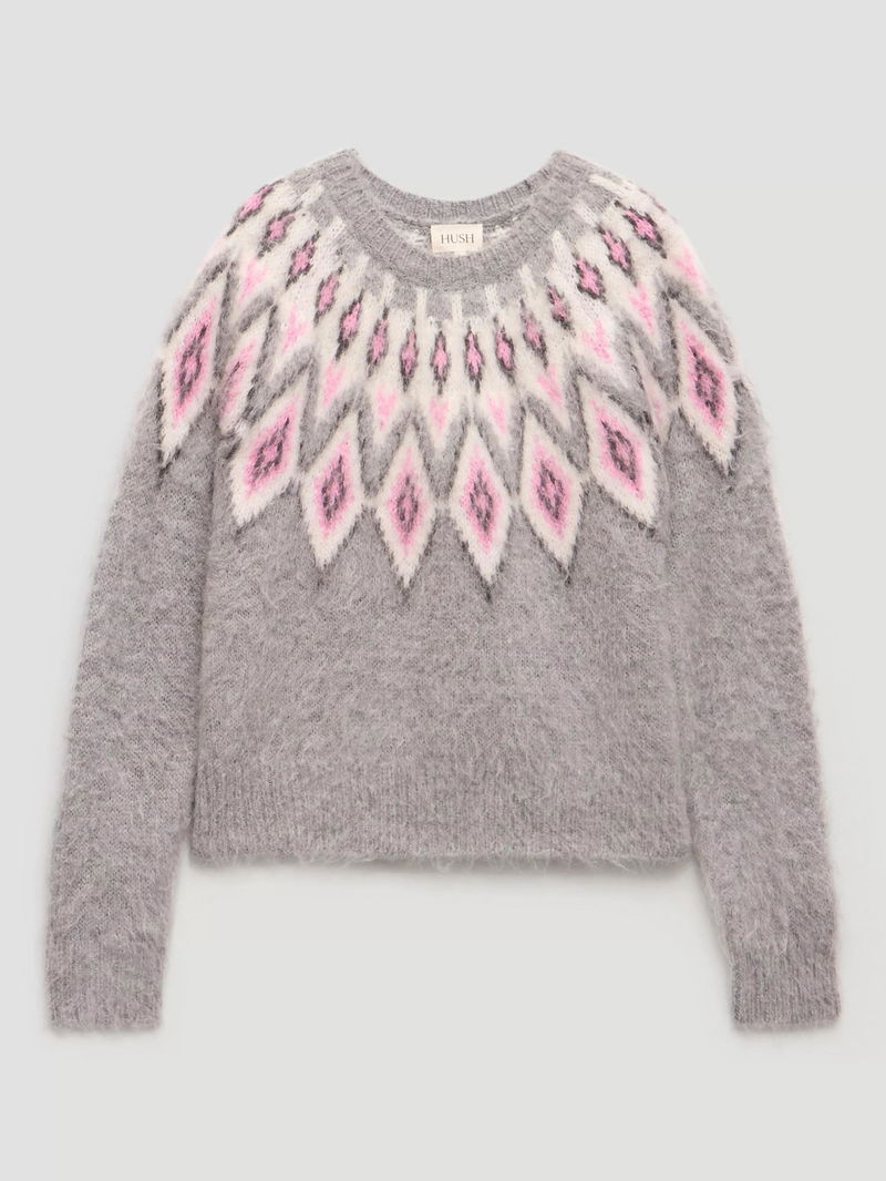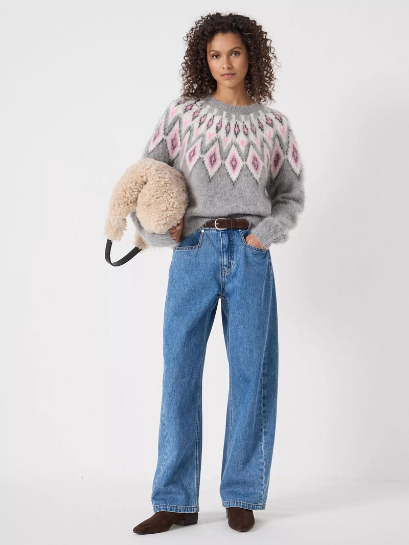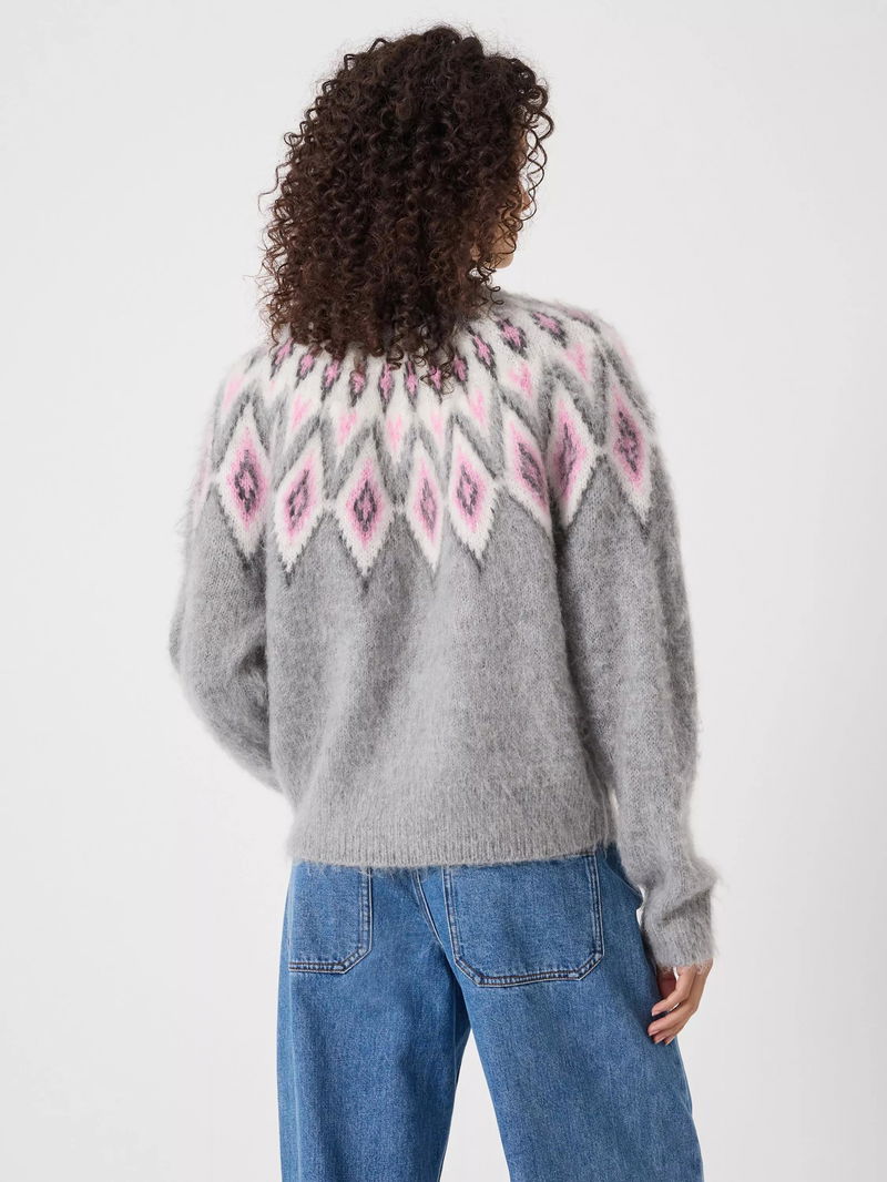 Crew Neck Fair Isle Jumper, Light Grey Marl