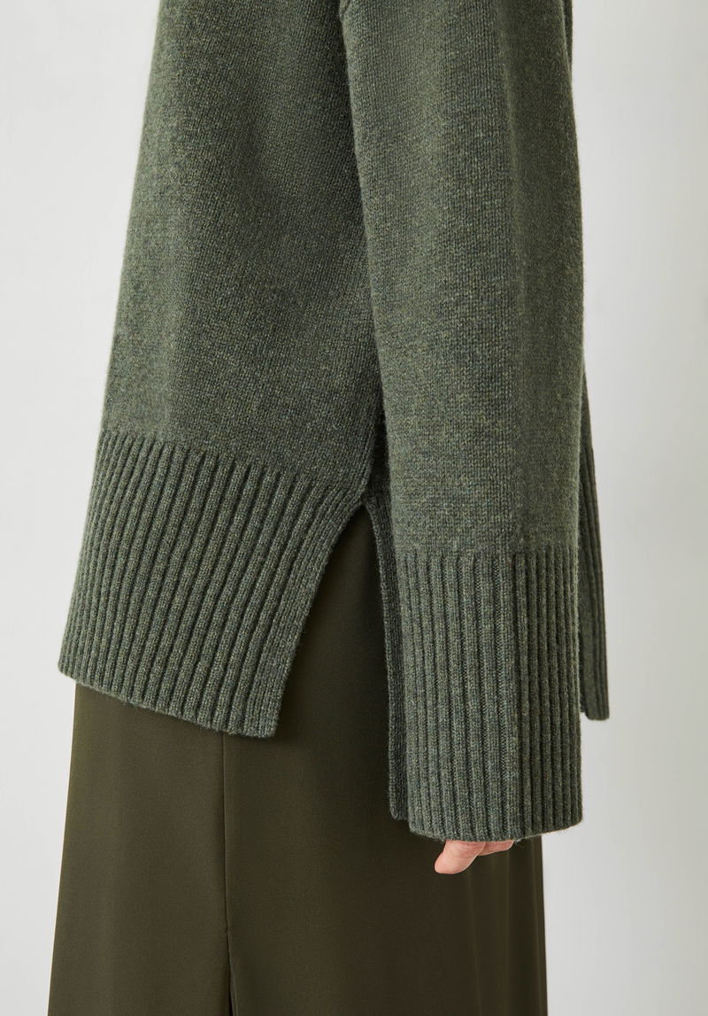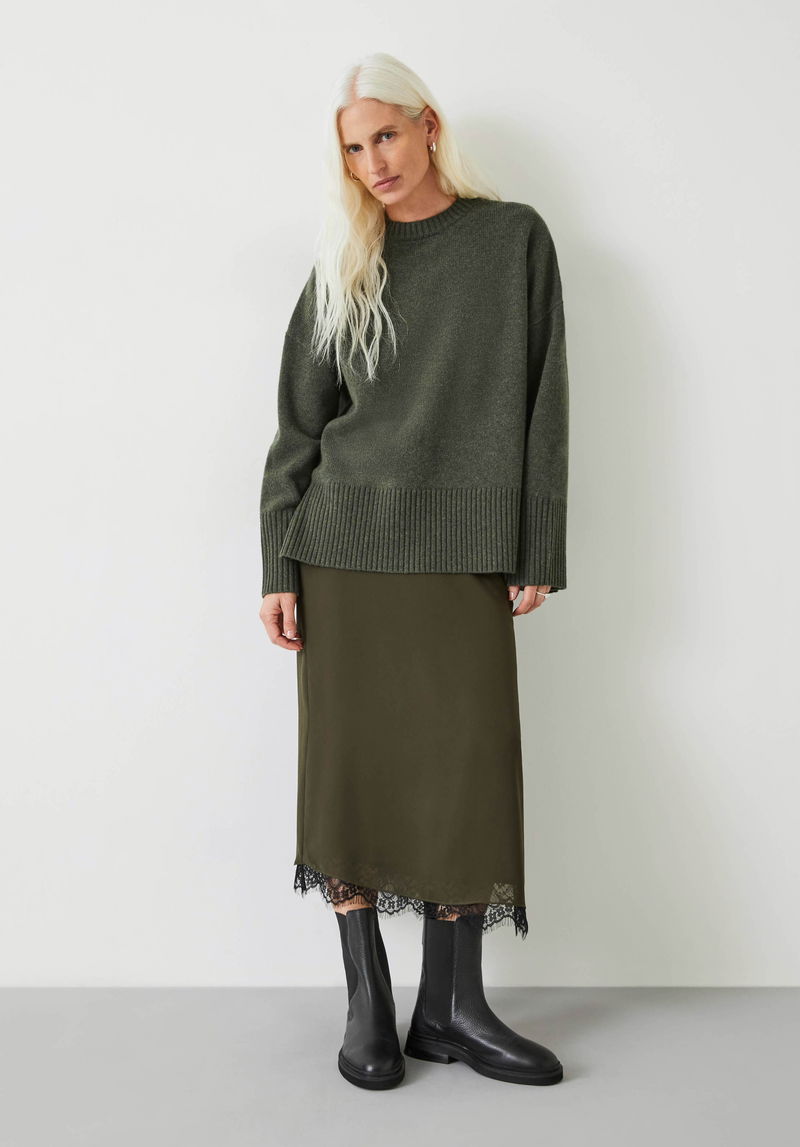 We’ve used pure wool to create the ultra-cosy, longline silhouette of the Danielle knit, and chosen two easy-to-wear shades to finish it off. Show off the split at the back of its ribbed hem by layering it under cropped leather jackets.