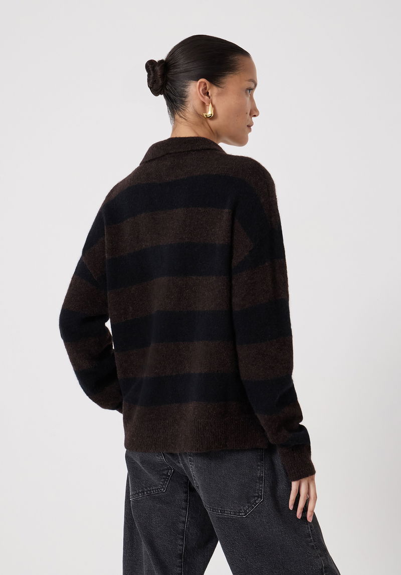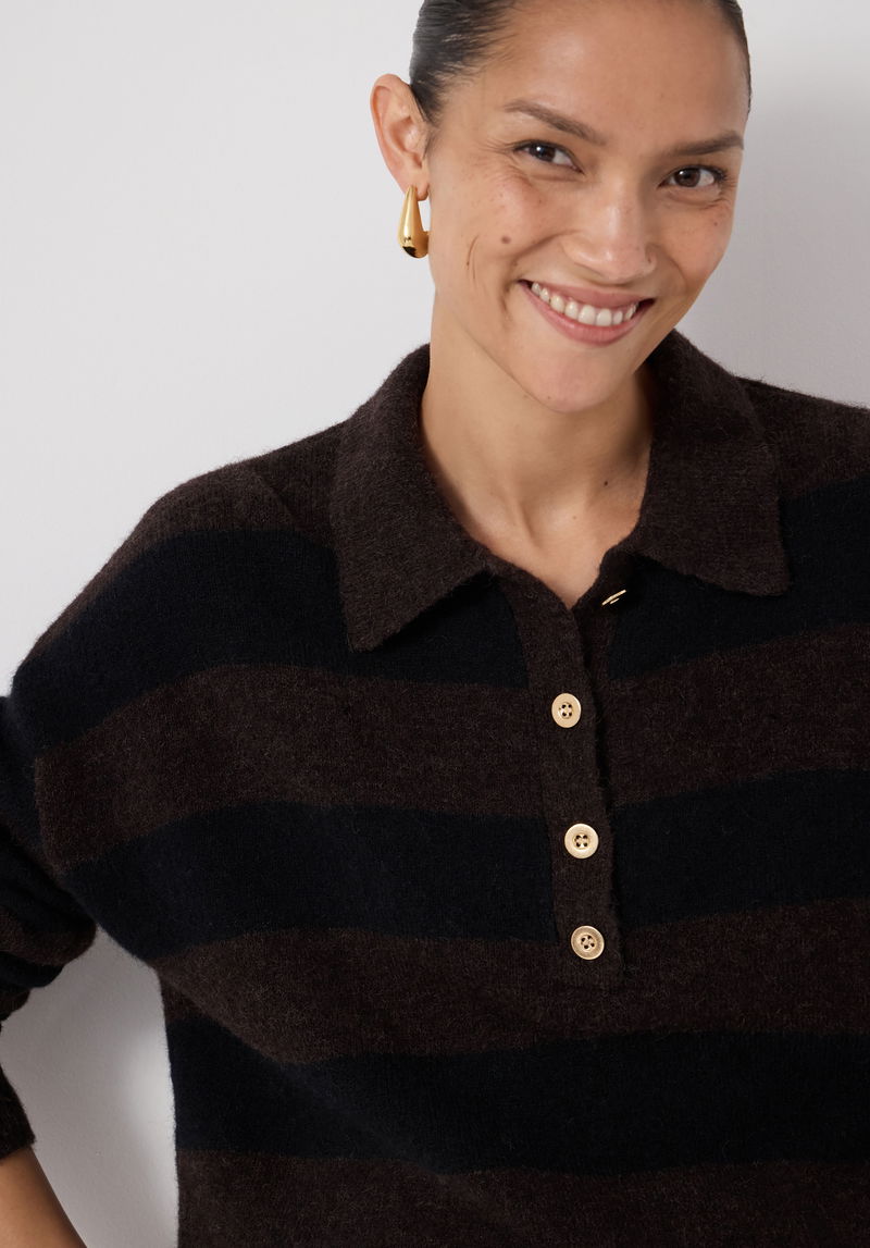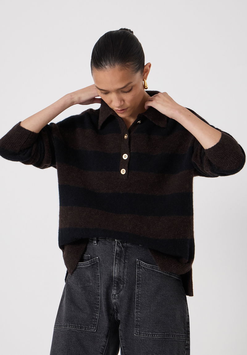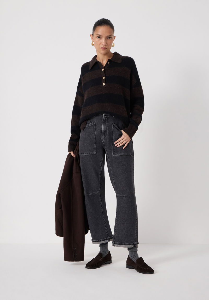 The key to making athletic styles work off the playing field? Go for a slightly more luxurious fabric, like this rugby jumper which comes in a lovely wool-alpaca blend to really dial up the texture. We love wearing the button placket open for a relaxed feel, and we'll be tucking the front into barrel-leg jeans to complete the look.