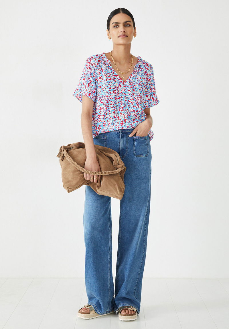 Ever feel like your look is missing that something to make it pop? The Elle top is the perfect solution. Its high-contrast animal print will add interest to any outfit combination – whether you pair it with jeans, shorts or dungarees – while the tie detail at the neck can be styled long and loose or fastened into a bow.