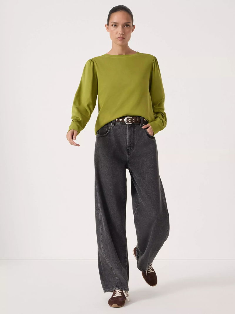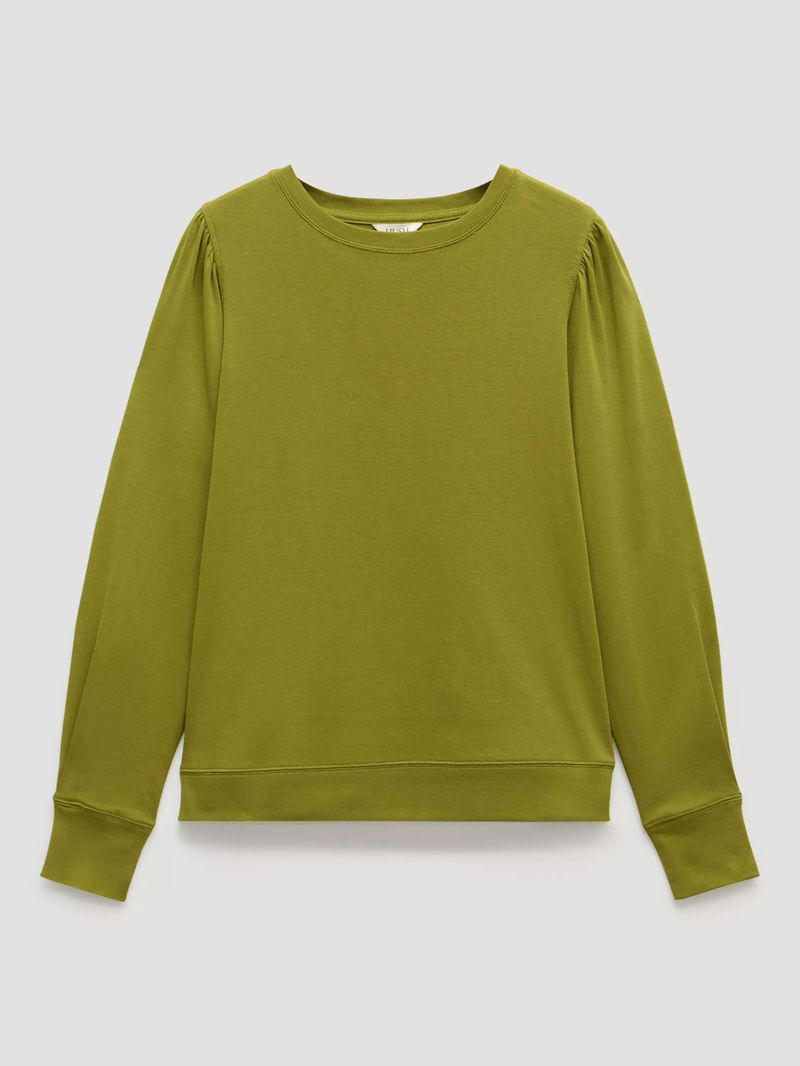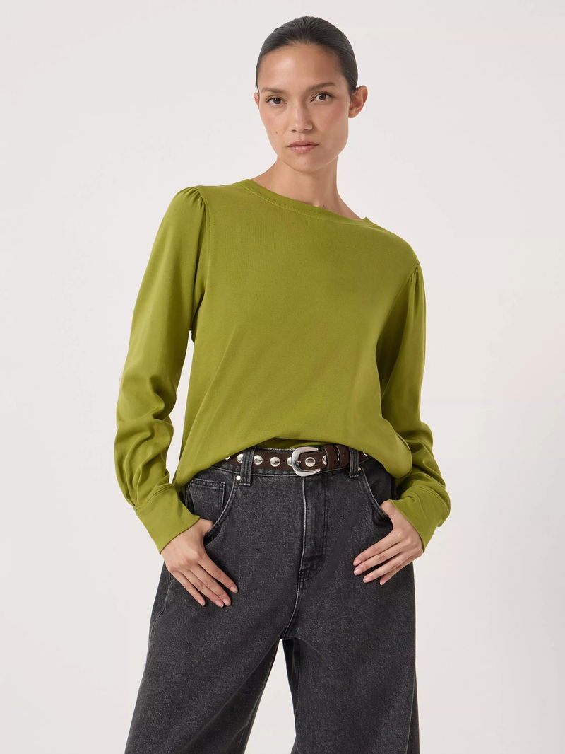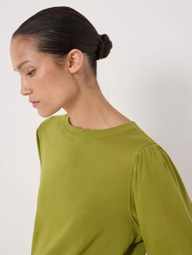 Emily Boat Neck Puff Sleeve Top, Olive Green