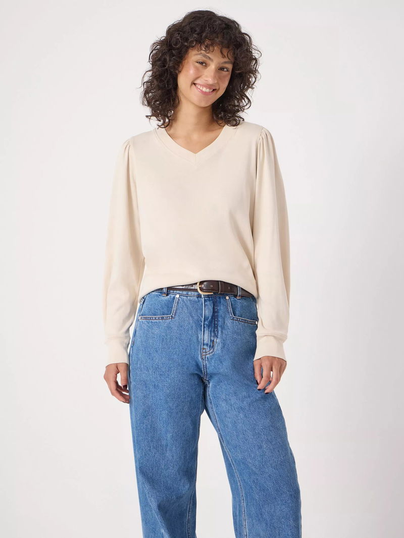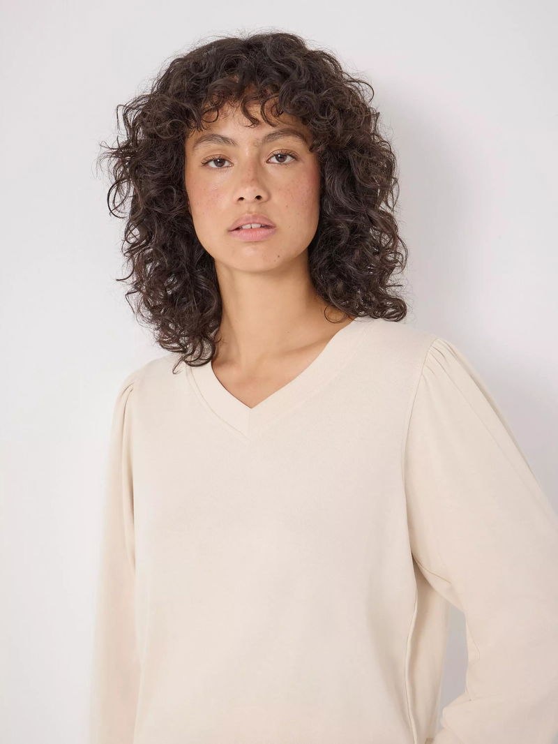 Emily Cotton Puff Sleeve V Neck Jersey Top
