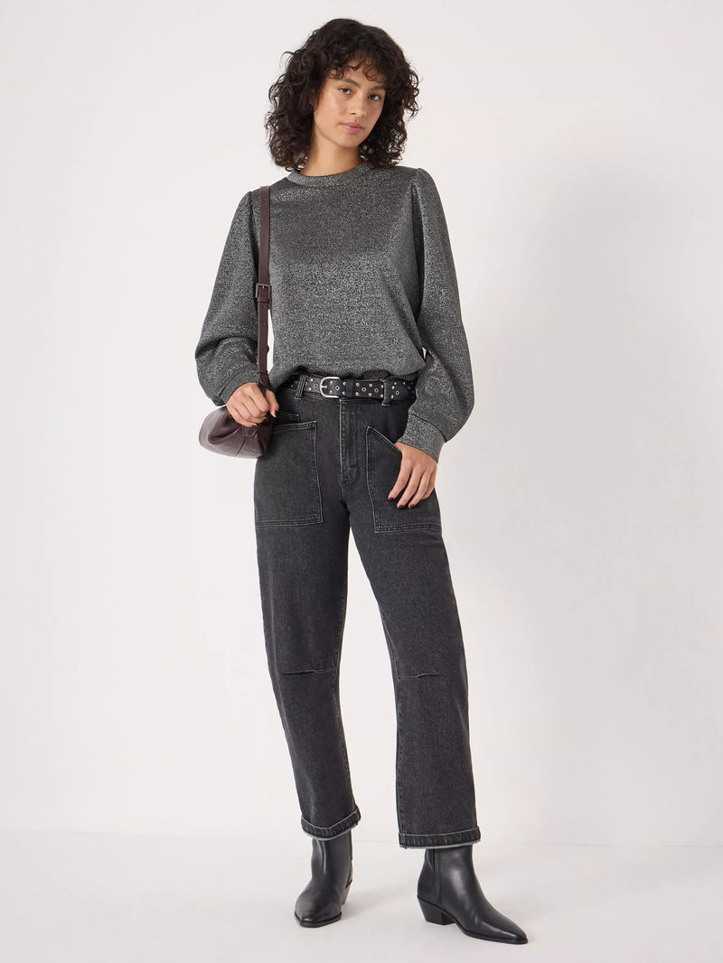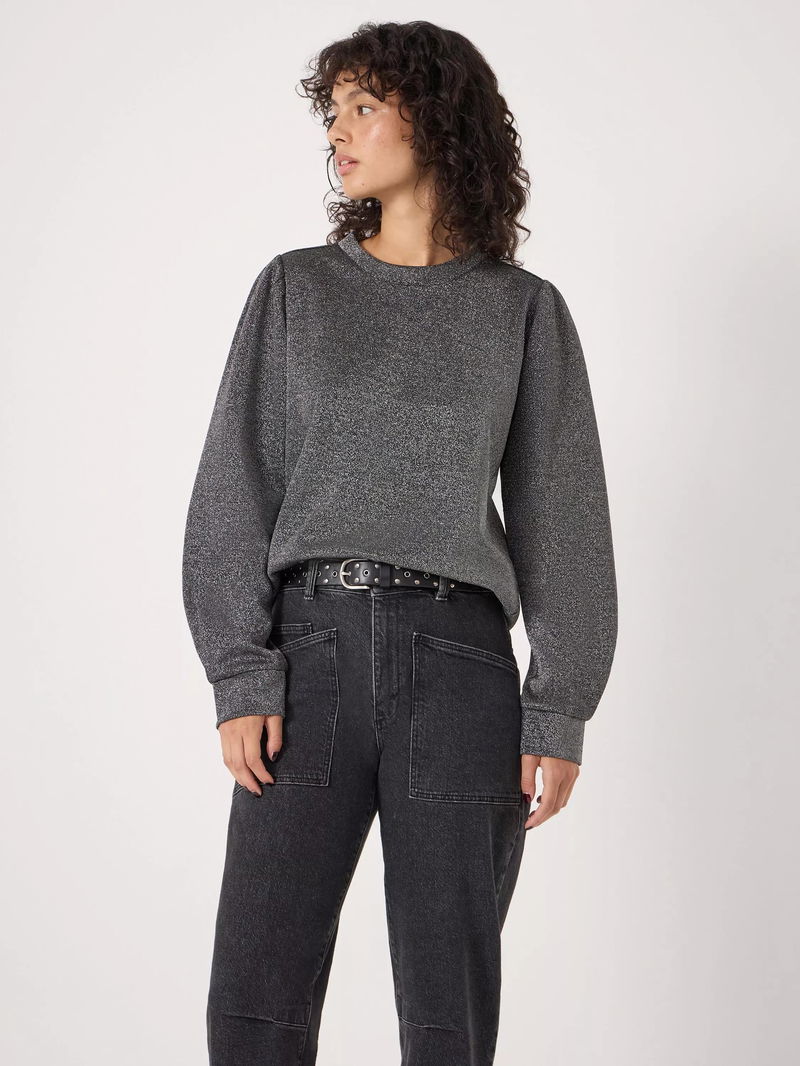 Emily Sparkle Long Sleeve Top, Gunmetal Grey