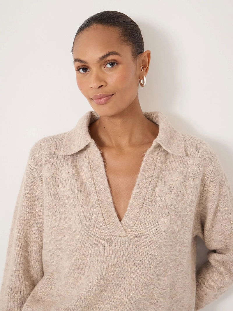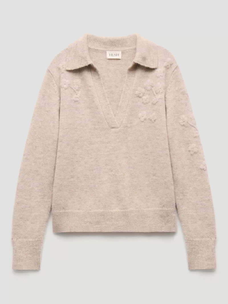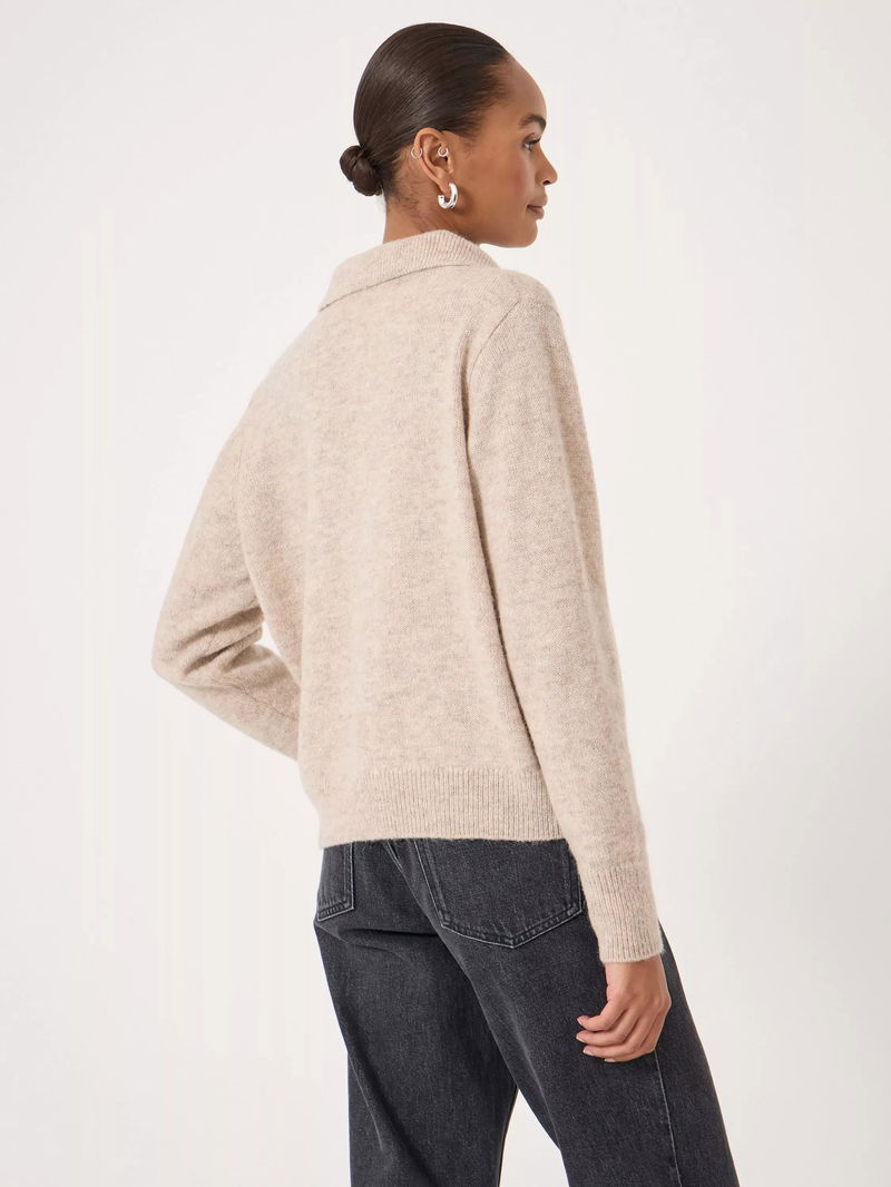 An alpaca blend jumper from HUSH for everyday ease. The open collar V-neck and long sleeves create a relaxed fit that's perfect for layering.