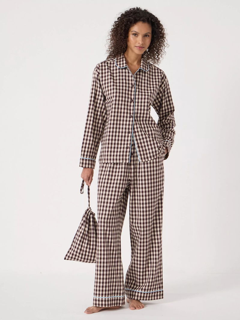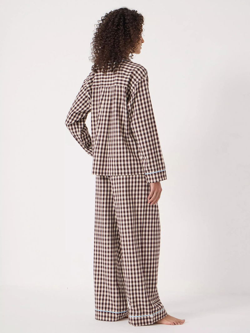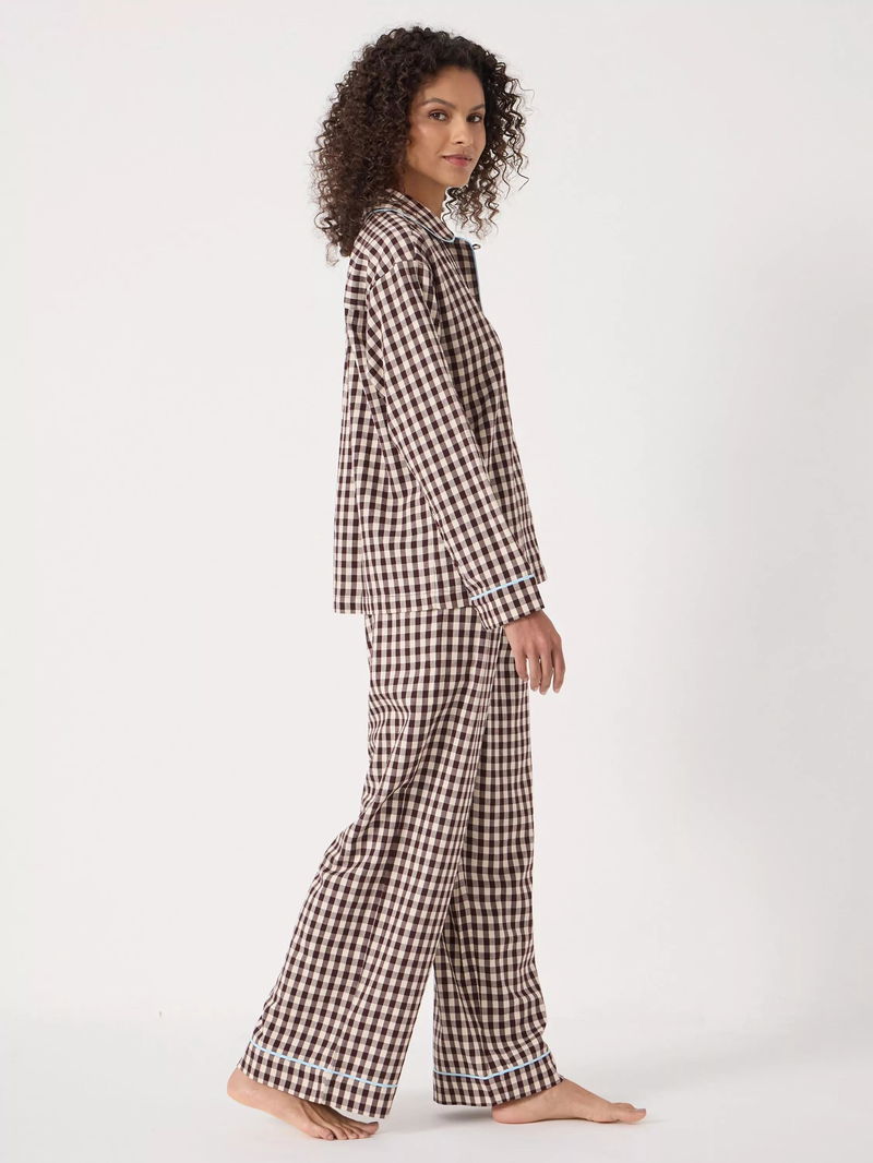Step into comfort with this gingham pyjama set. The soft brushed cotton blend feels gentle all night, the collar and button fastening keep things smart yet relaxed, and the classic design makes lounging or early mornings more enjoyable for you.