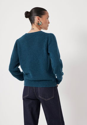 Crafted in a soft textured knit, and designed with pretty puff sleeves, the cerulean blue of our Harper Crew Knit will instantly refresh your autumn wardrobe. Pair with relaxed trousers at the weekend.