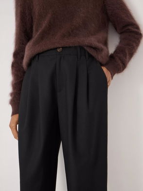 The Hayes cigarette trousers are slightly cropped and come in a slim fit, so we can play with proportions up top and tuck in something a little more oversized.