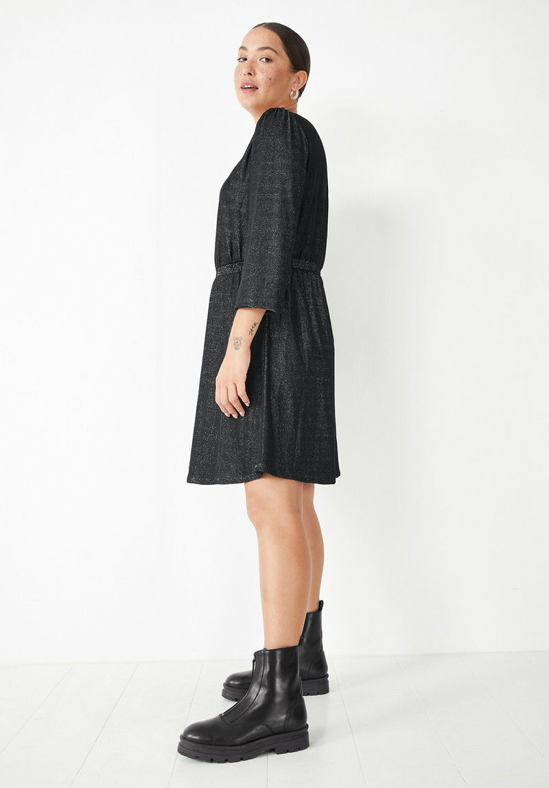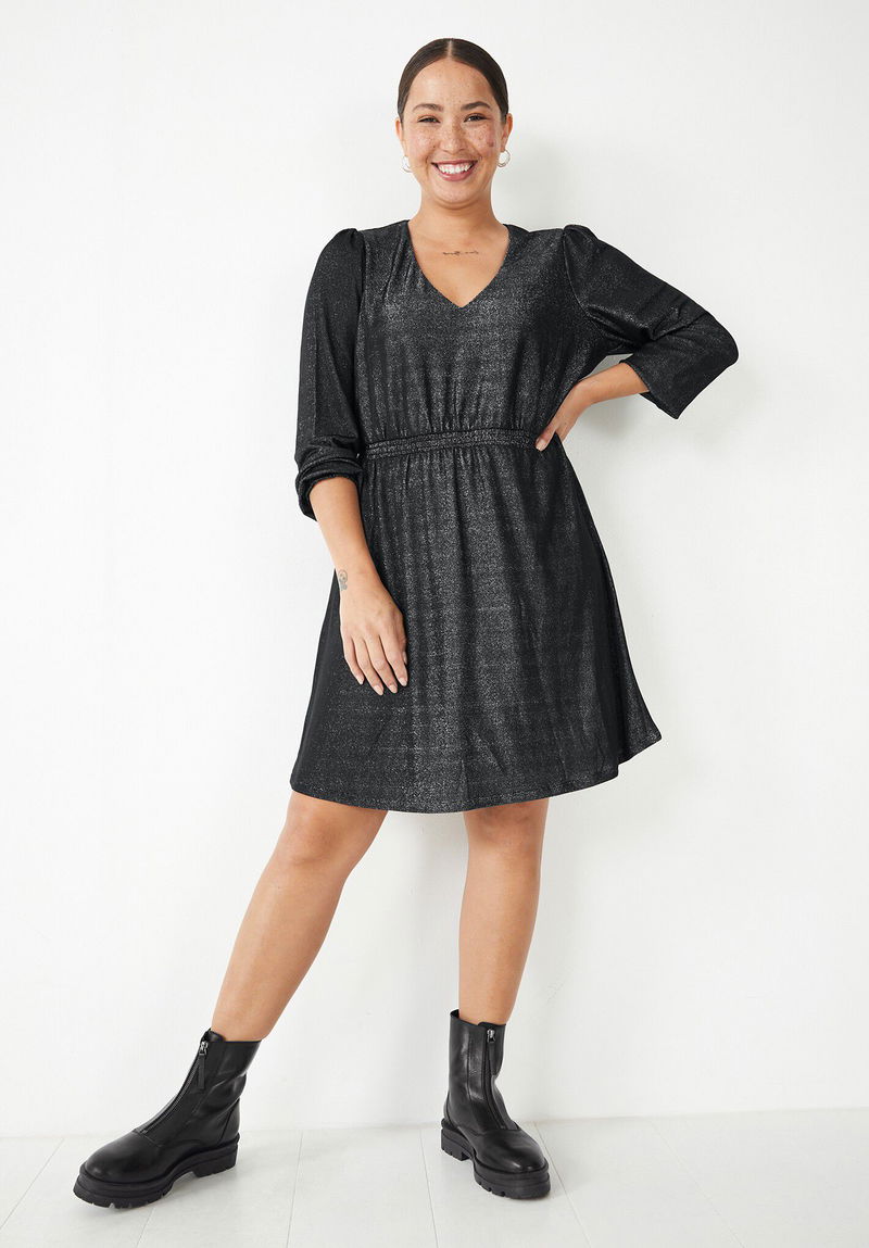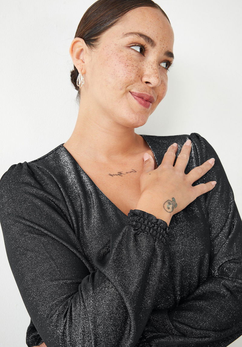 You may notice lots of metallic jersey in our new-season collection – it's our wearable nod to party dressing. Our Jasleen mini dress gets the sparkly treatment thanks to a subtle shimmer in the fabric which catches the light beautifully – whether you're on the dancefloor or the commute to work. Check out the elasticated waist, drapey blouson sleeves and feminine V-neckline: features that are functional and flattering.