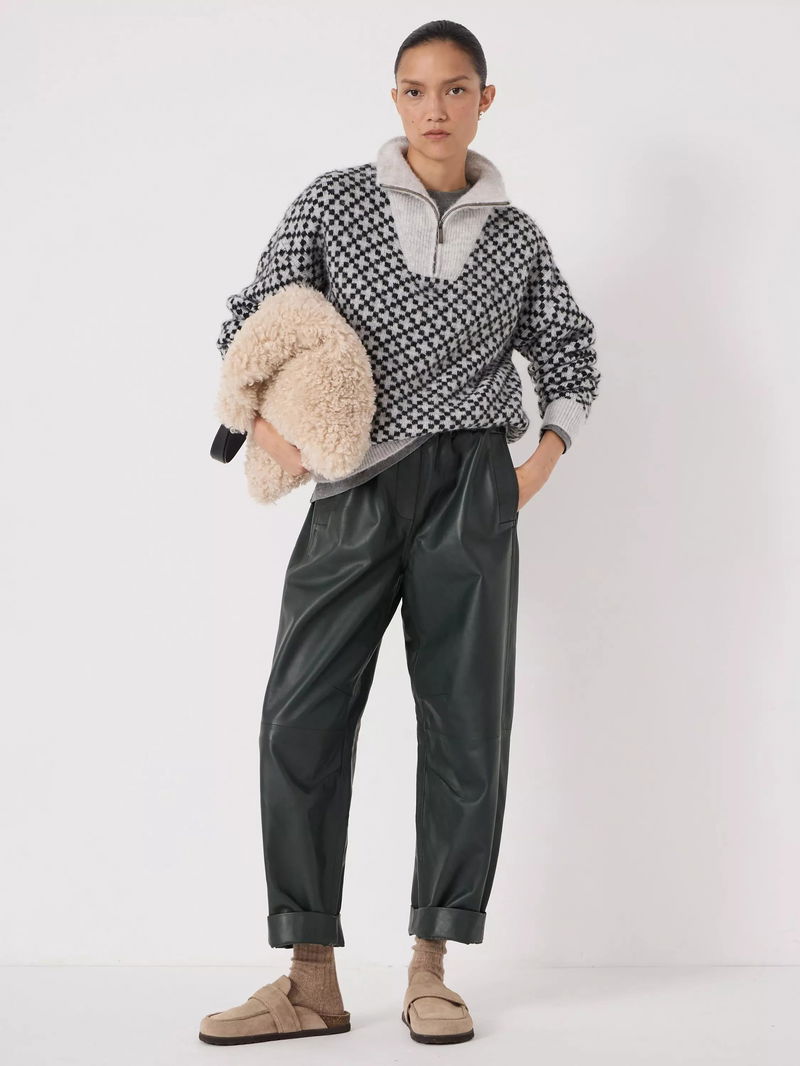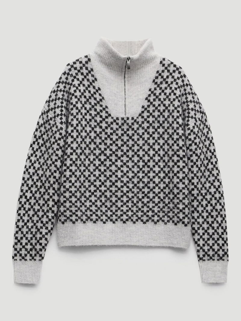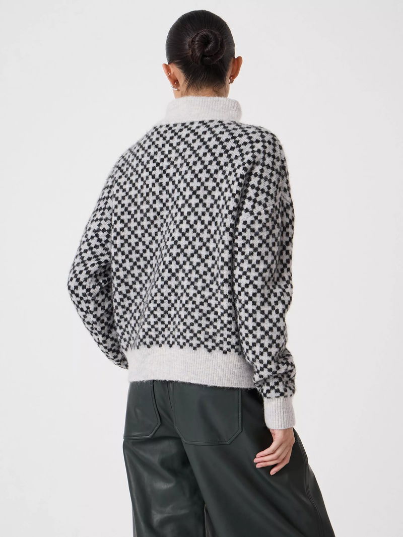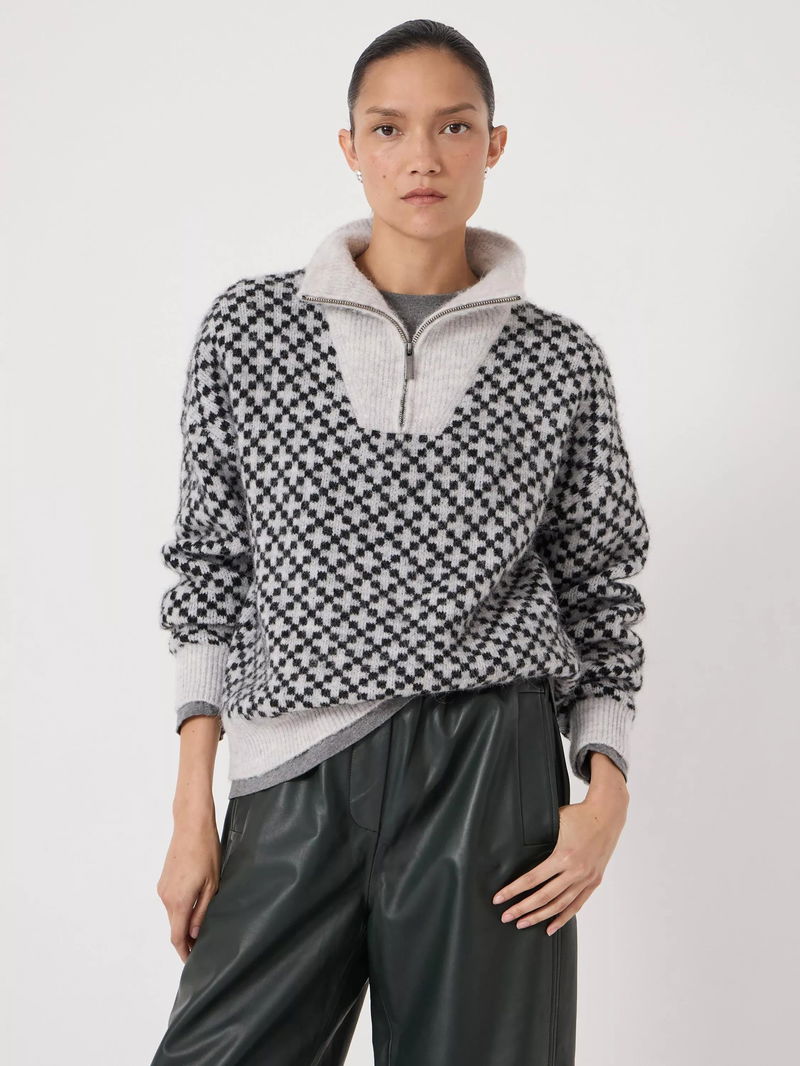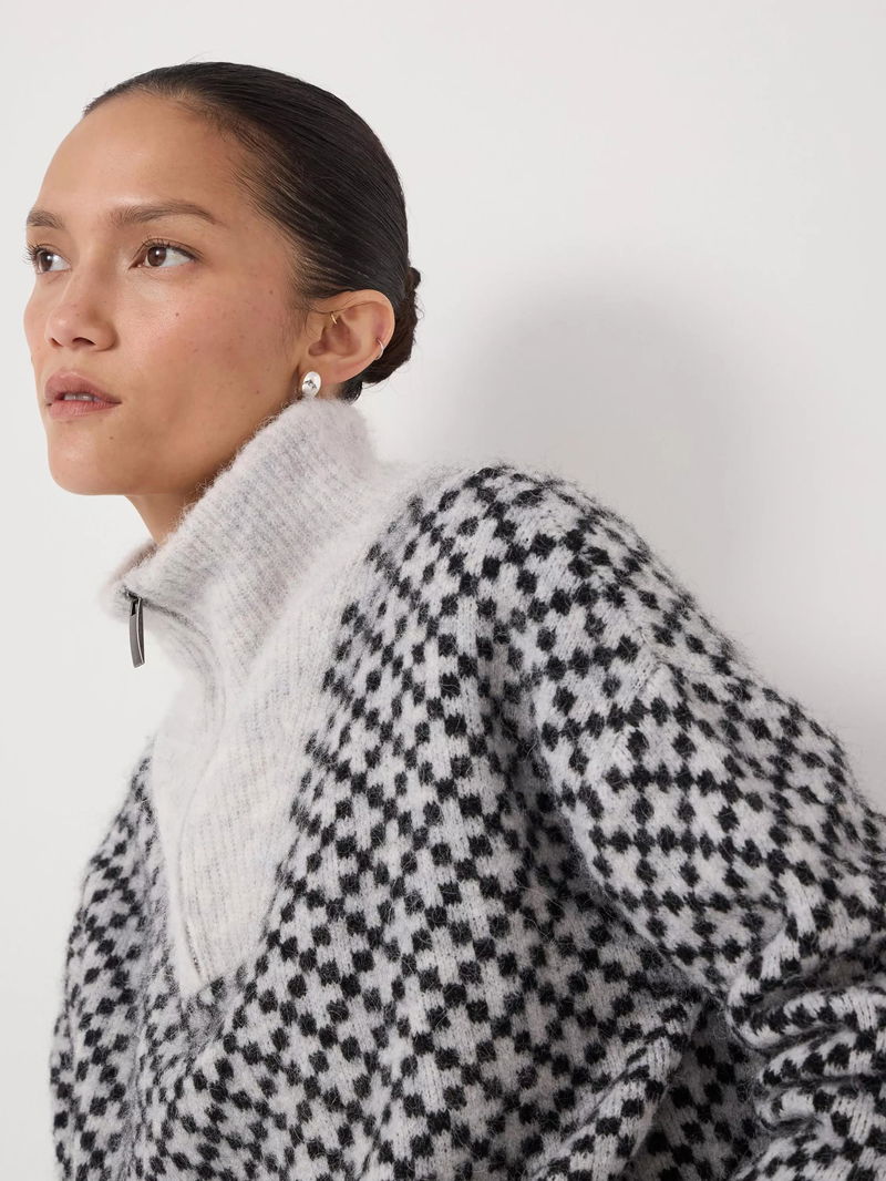 Juno Quarter Zip Mono Wool Jacquard Jumper