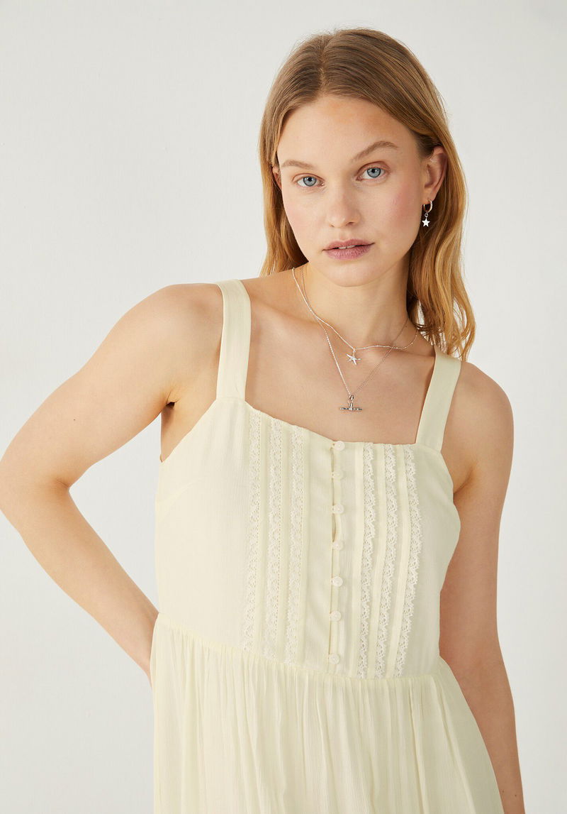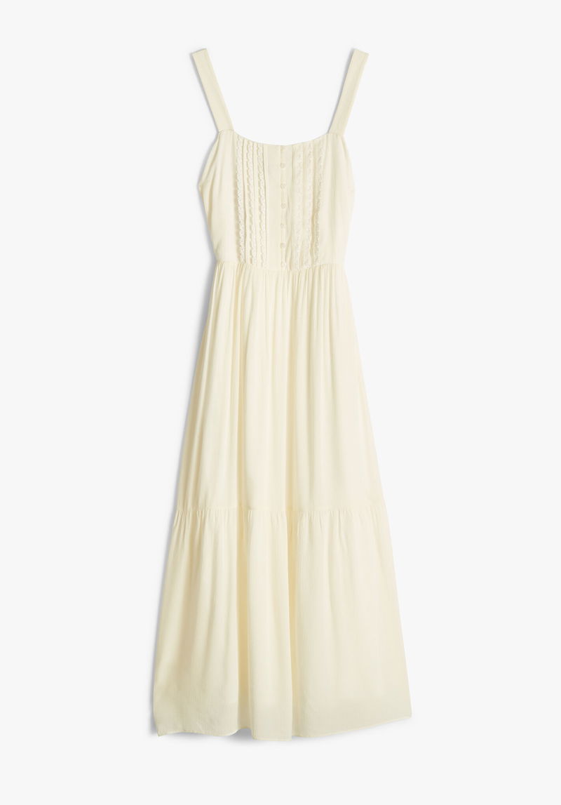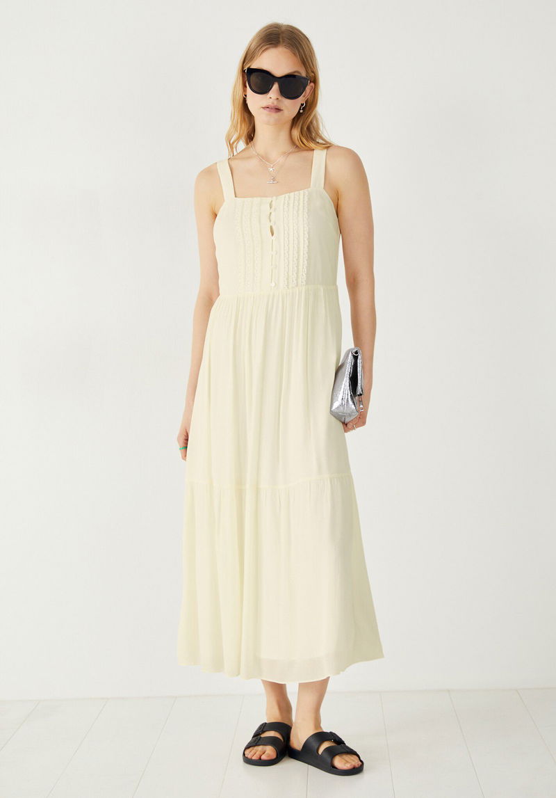Far from being a short-lived fling, our love for the Katrina dress is turning into a full-blown summer romance. This midi style is fitted through the bust with lace panelling, complete with a flowy skirt for flattering volume. Dainty buttons to the front give it a feminine finish, while the Lenzing™ Ecovero™ viscose fabric is beautifully lightweight on skin.