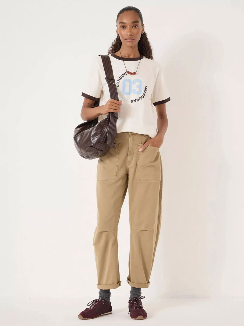 They've added contrast trims for a slightly athletic feel. The favourite way to wear it is with barrel-leg trousers for an easy everyday look.