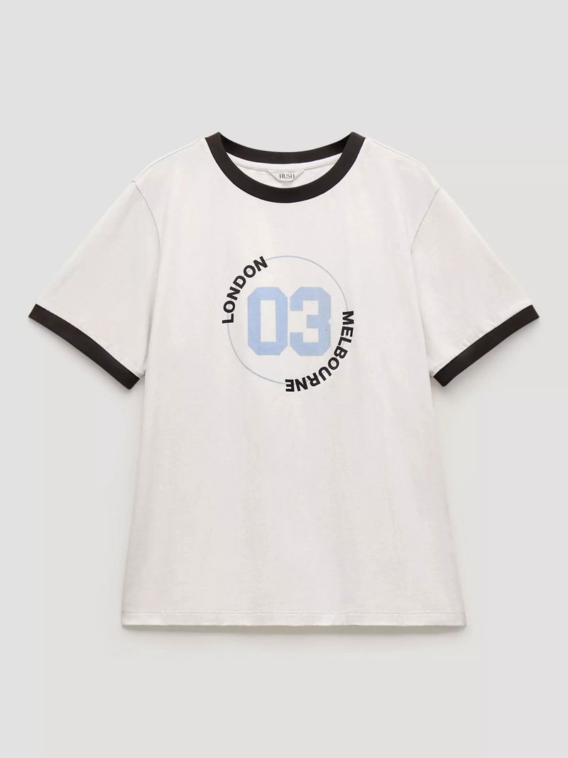 Graphic tees for off-duty days - just makes sense, right? This one's a nod to HUSH's laid-back Aussie roots and the energy of their London hometown with its colourful print to the front.