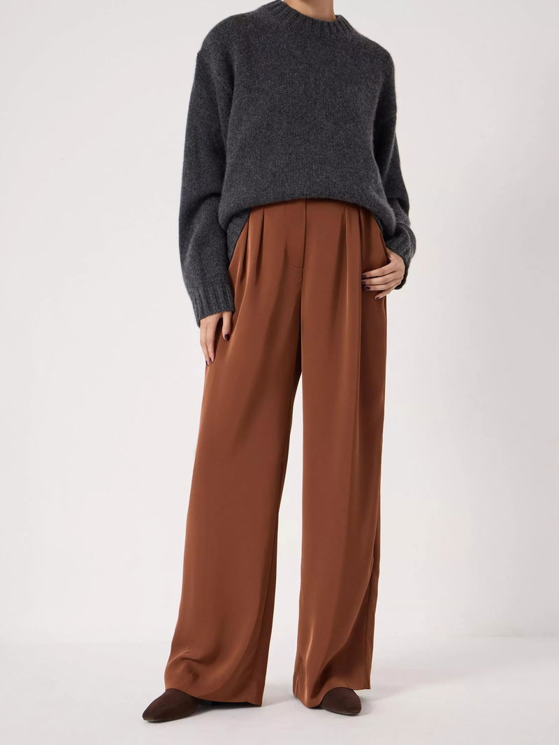 Confidence starts in the stance with this pair of wide-leg trousers by HUSH. They feature a mid rise and are kept otherwise minimalist to pair with anything.
