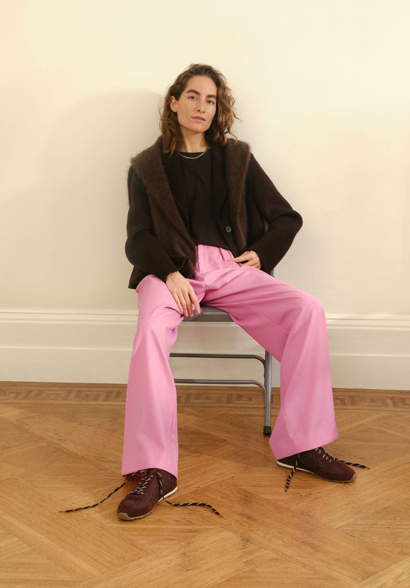 No-fuss tailoring? We've got you. We've adapted our bestselling Lya fit to create these wide-leg trousers, tweaking the pleat detailing to the front for a more flattering finish. We love that they're made from a premium wool blend so we can wear them right now on chilly days, while the bubblegum pink shade makes them perfect for spring.