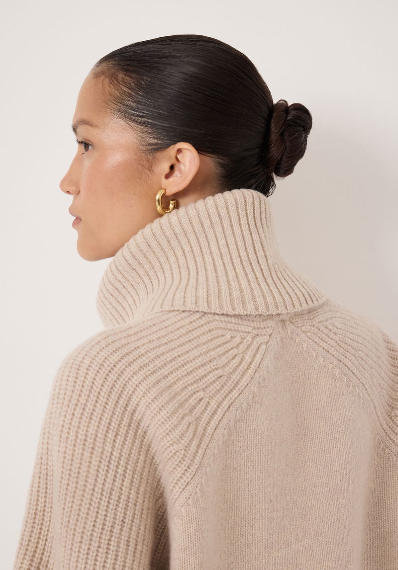 Transitional weather – it's tricky to master (style-wise) but not impossible when you have the right pieces to hand, like our Mira jumper here. We've added a handy detachable roll neck, which means we can also wear it as a crew neck once we've seen out the last of this season's frosty weather, and it's woven with premium wool that feels lovely and soft.