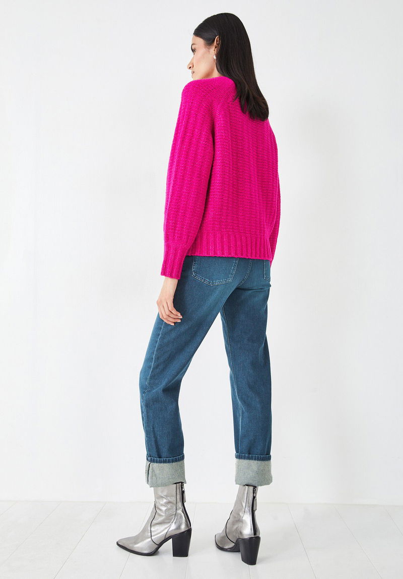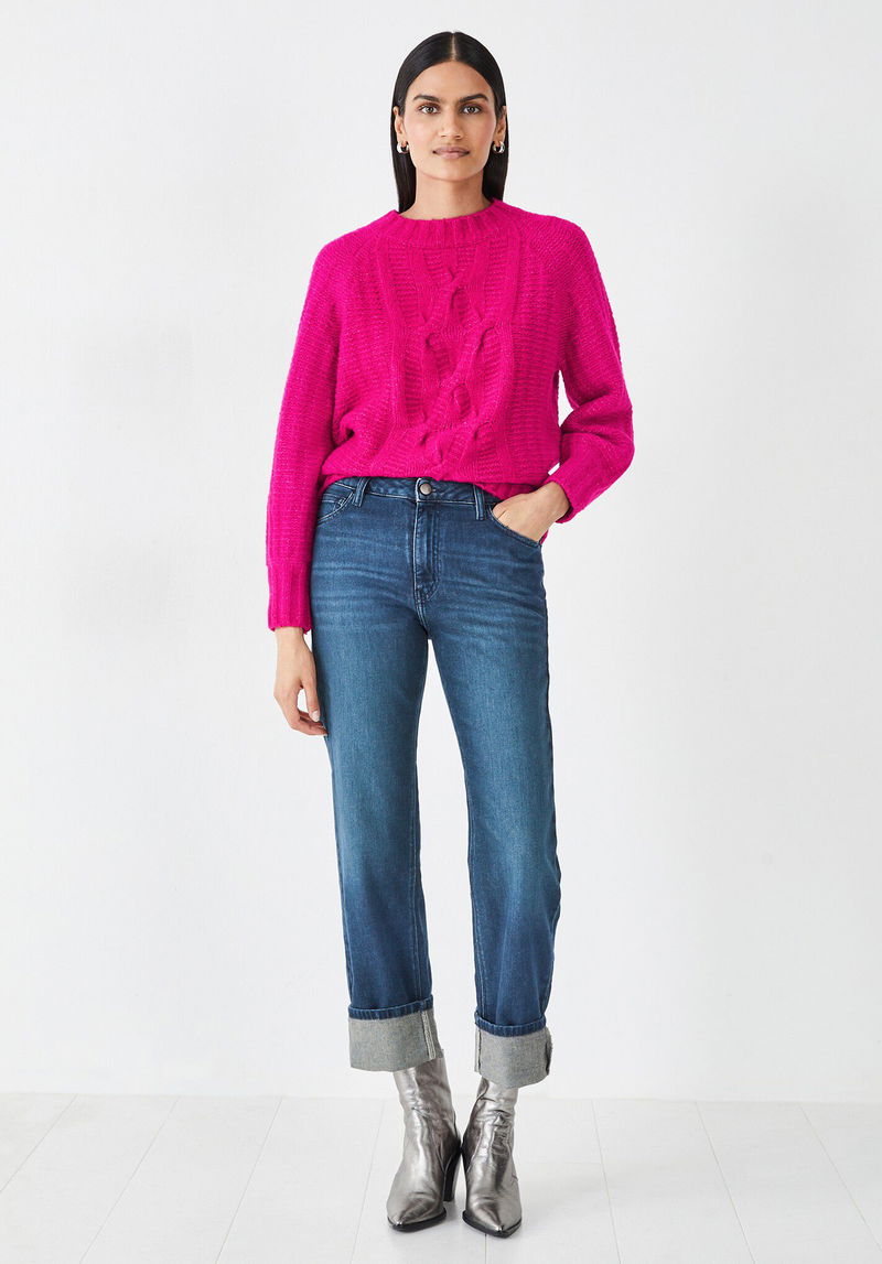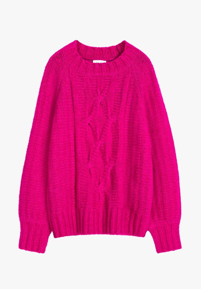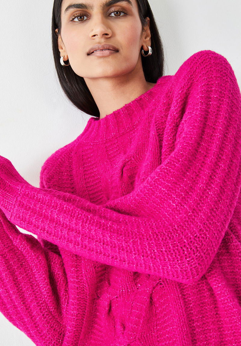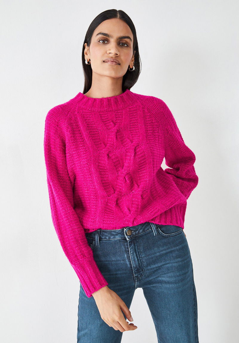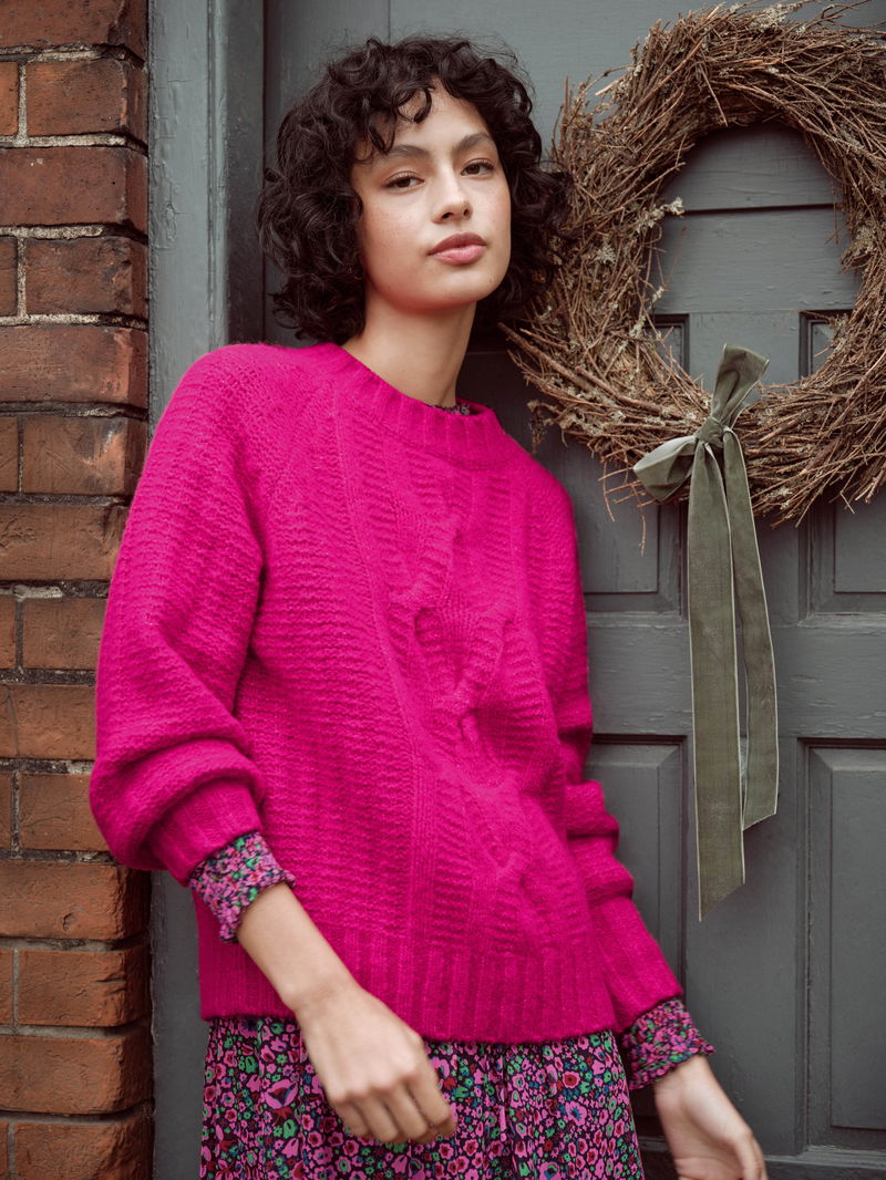 If, like us, you always look at the label to see what your clothing is made of, you'll be pleased to know that our Nellie jumper is woven with super-soft wool. We've chosen a vibrant magenta pink shade for this cosy design to keep our spirits high on chilly winter days, while the chunky cable-knit weave means it's ideal for layering.