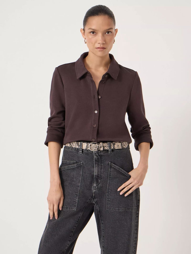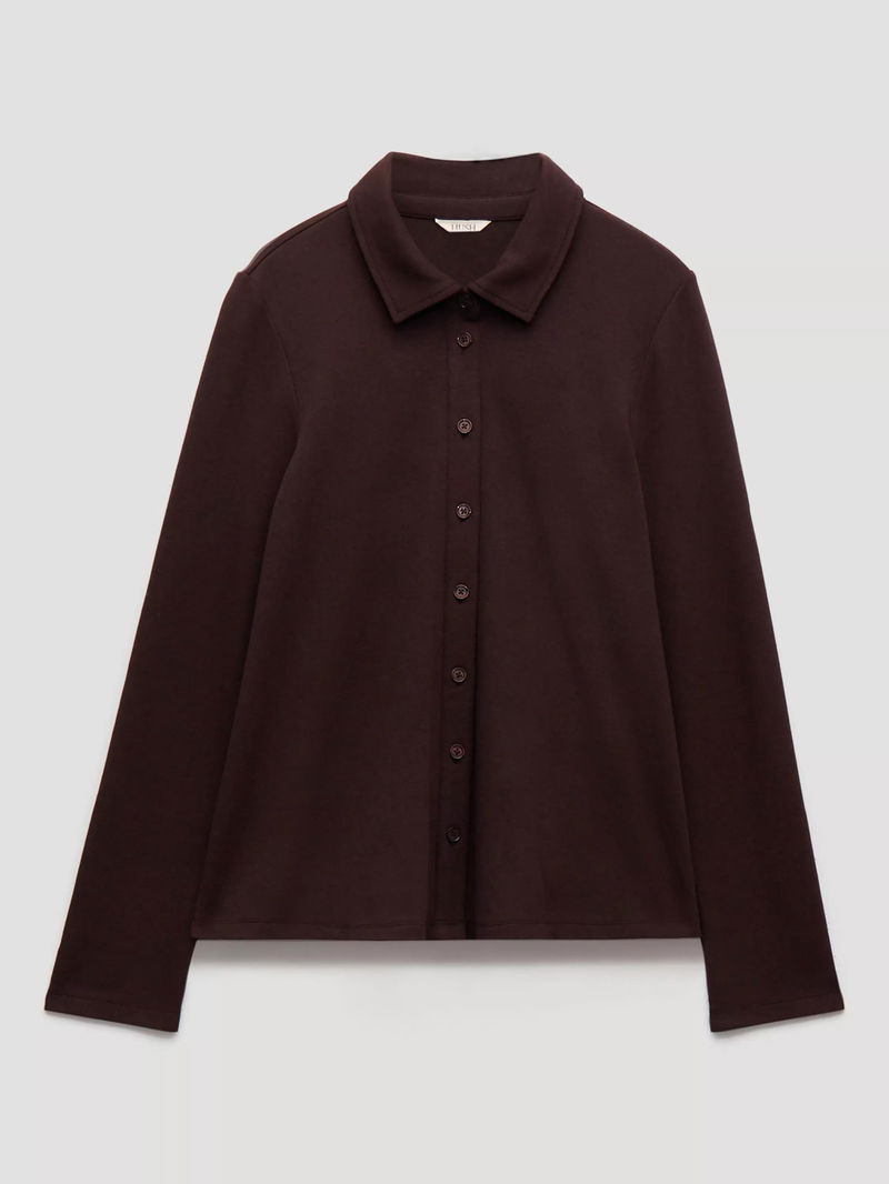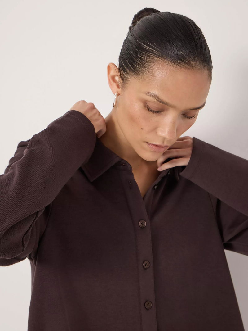 An A-line polo top by HUSH, made from a comfortable cotton-rich fabric. With a collar neck and long sleeves, it has a go-with-anything plain design.